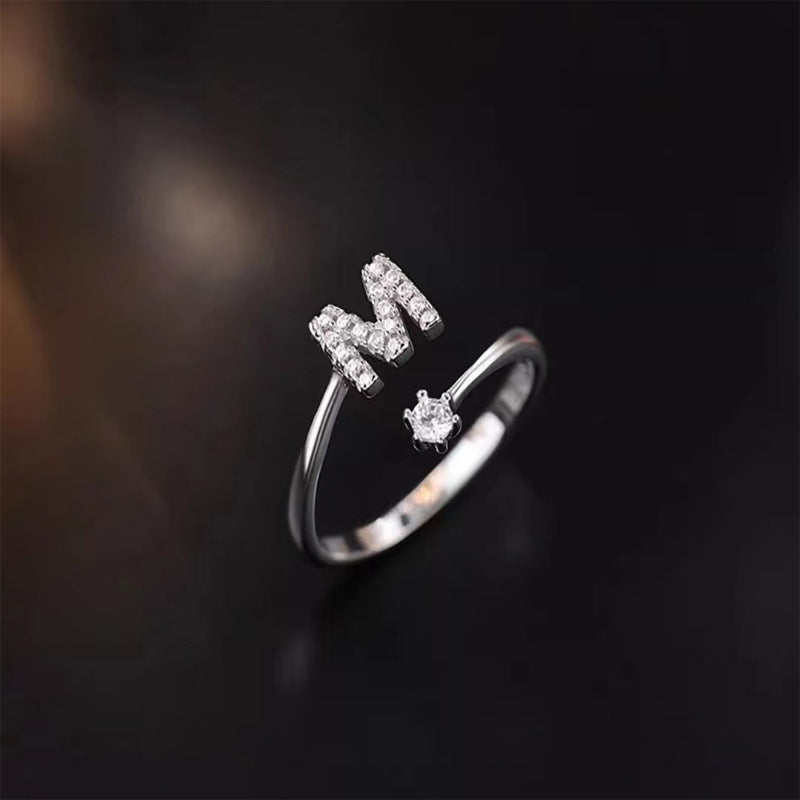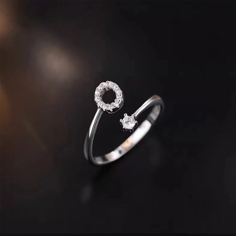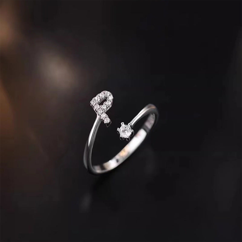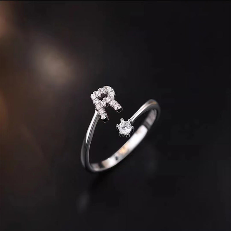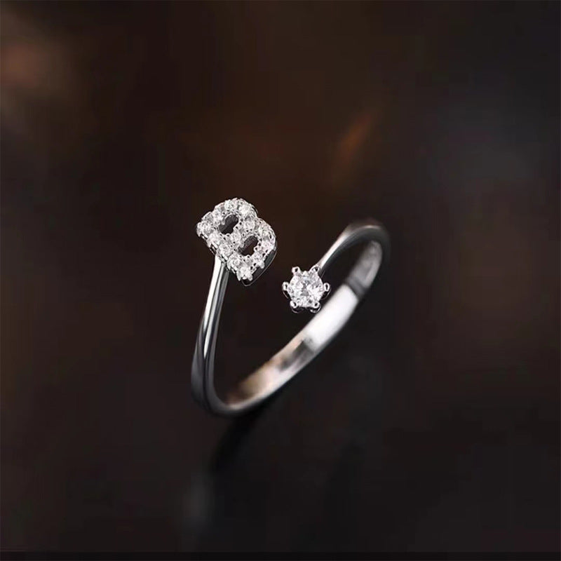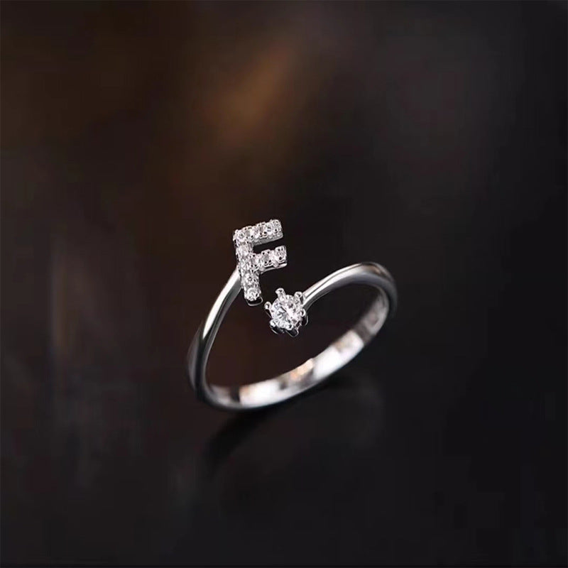 26 English Letters Zircon Sterling Silver S925 Adjustable Ring Jewelry