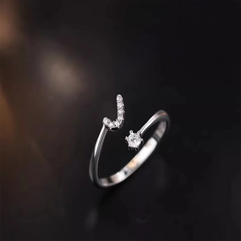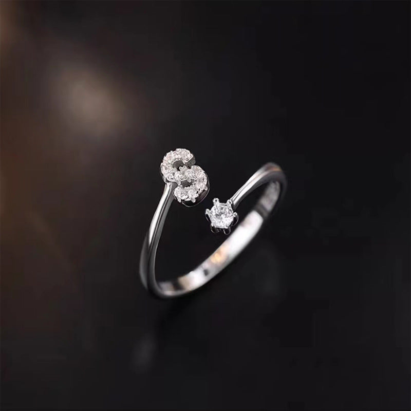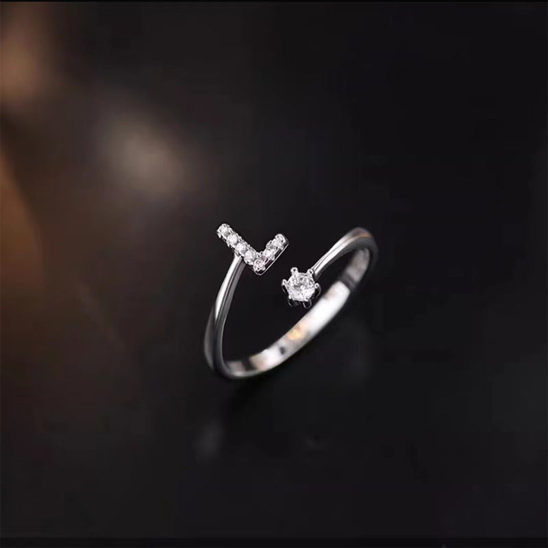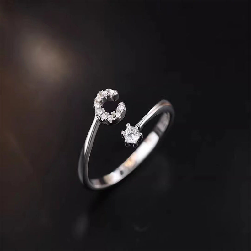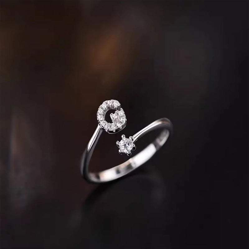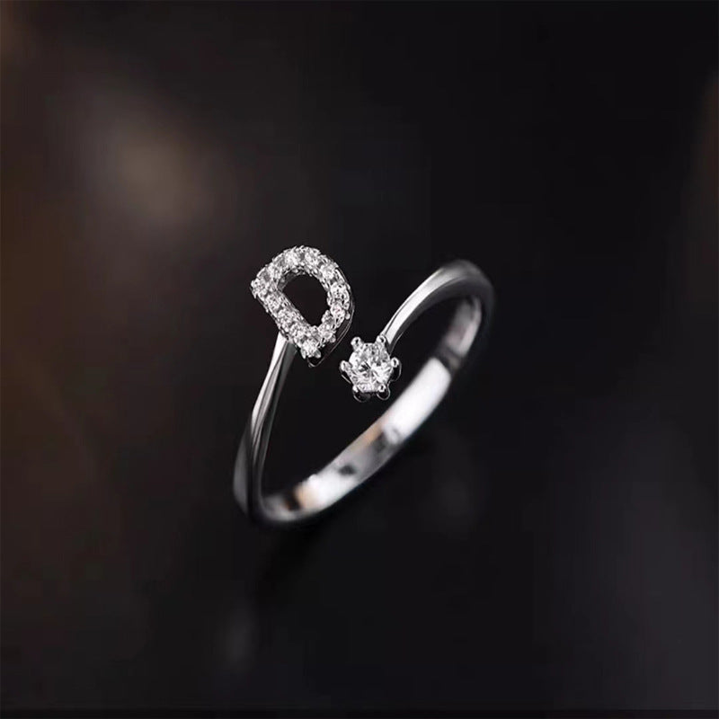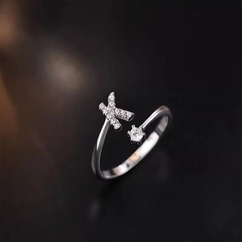 26 English Letters Zircon Sterling Silver S925 Adjustable Ring Jewelry