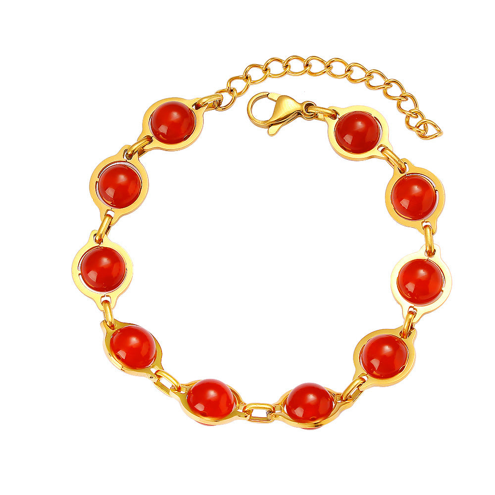 18K Gold Plated Stainless Steel Agate and Tigereye Bohemian Beaded Bracelet