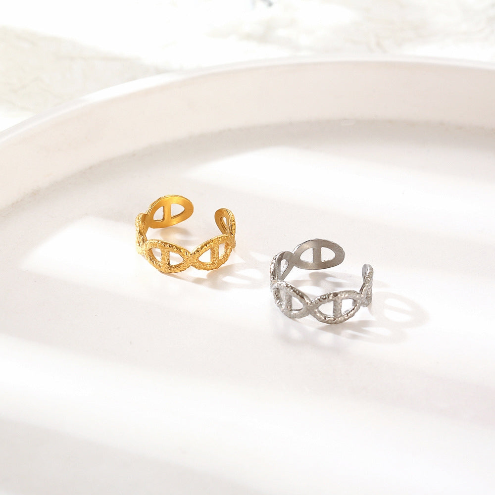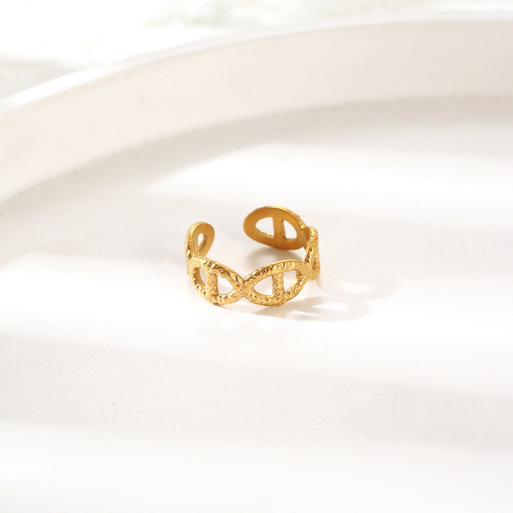 18K Gold Plated Stainless Steel Open Ring with C-Shape Design