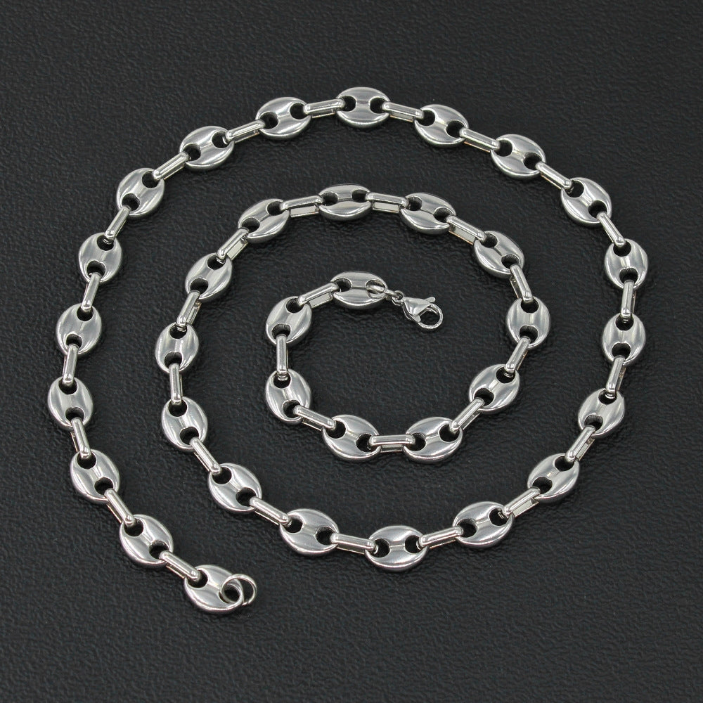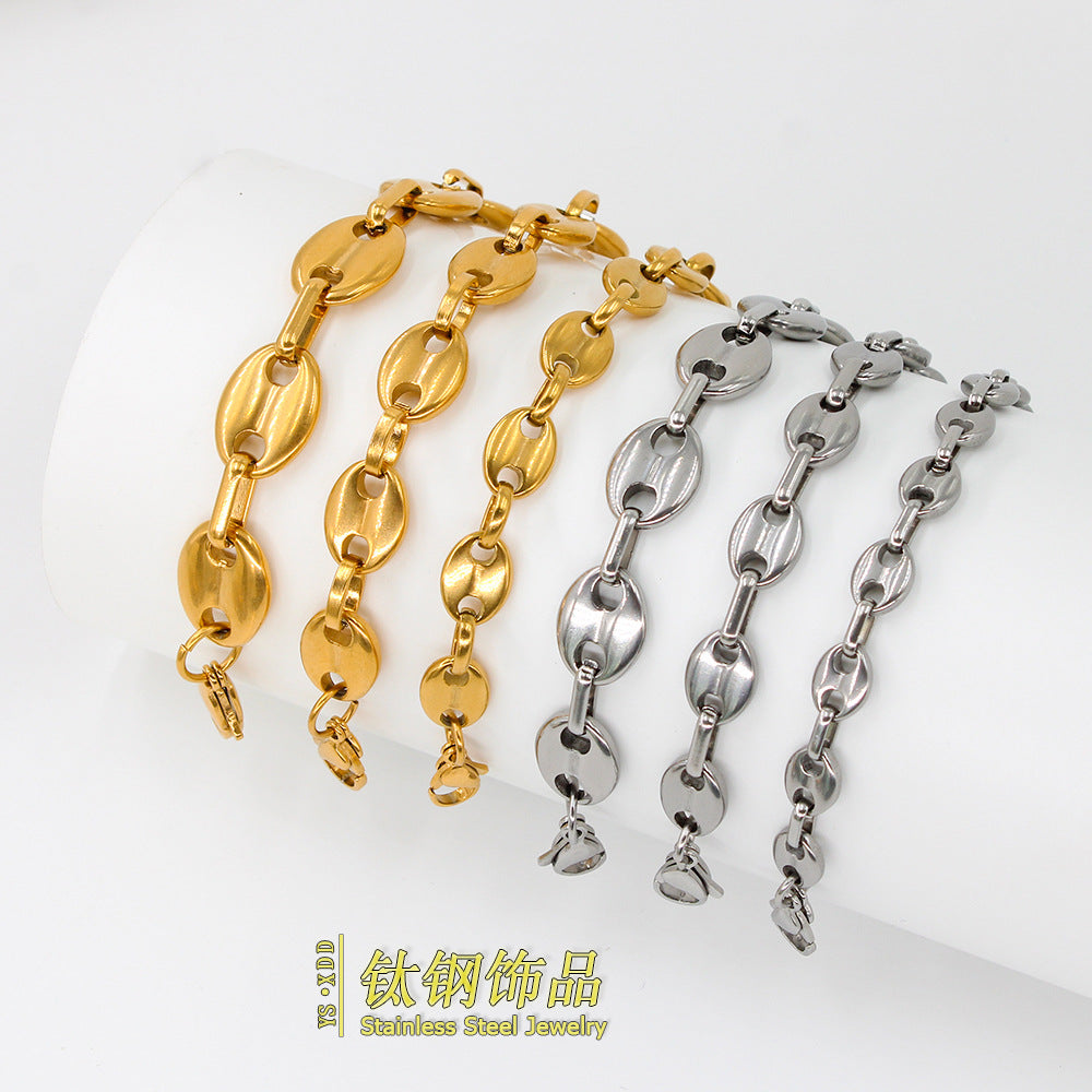 18K Gold Plated Stainless Steel Coffee Bean Necklace and Lobster Clasp Bracelet Set