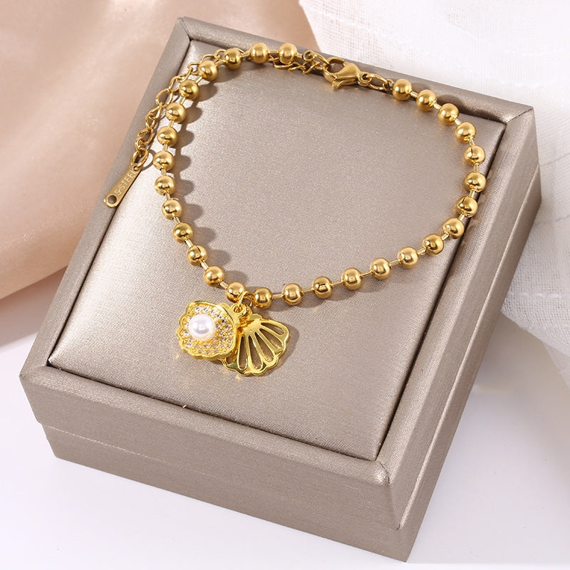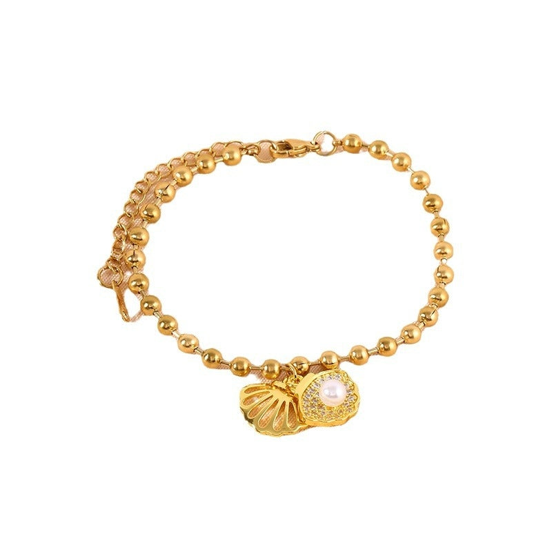 304 Stainless Steel Zircon Shell Pearl Bracelet - Minimalist Luxury Design
