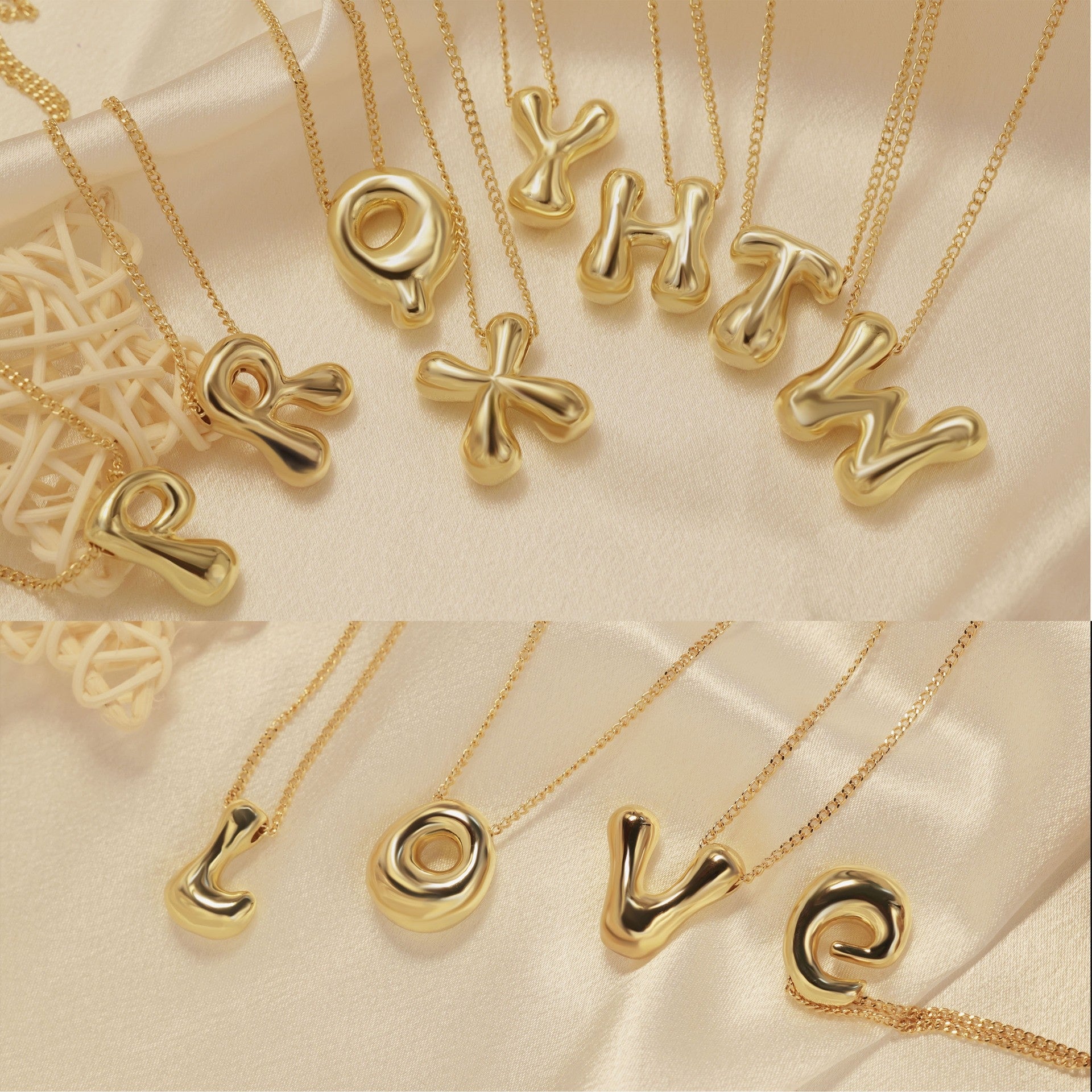 304 Stainless Steel Gold Plated Bubble Letter Necklace
