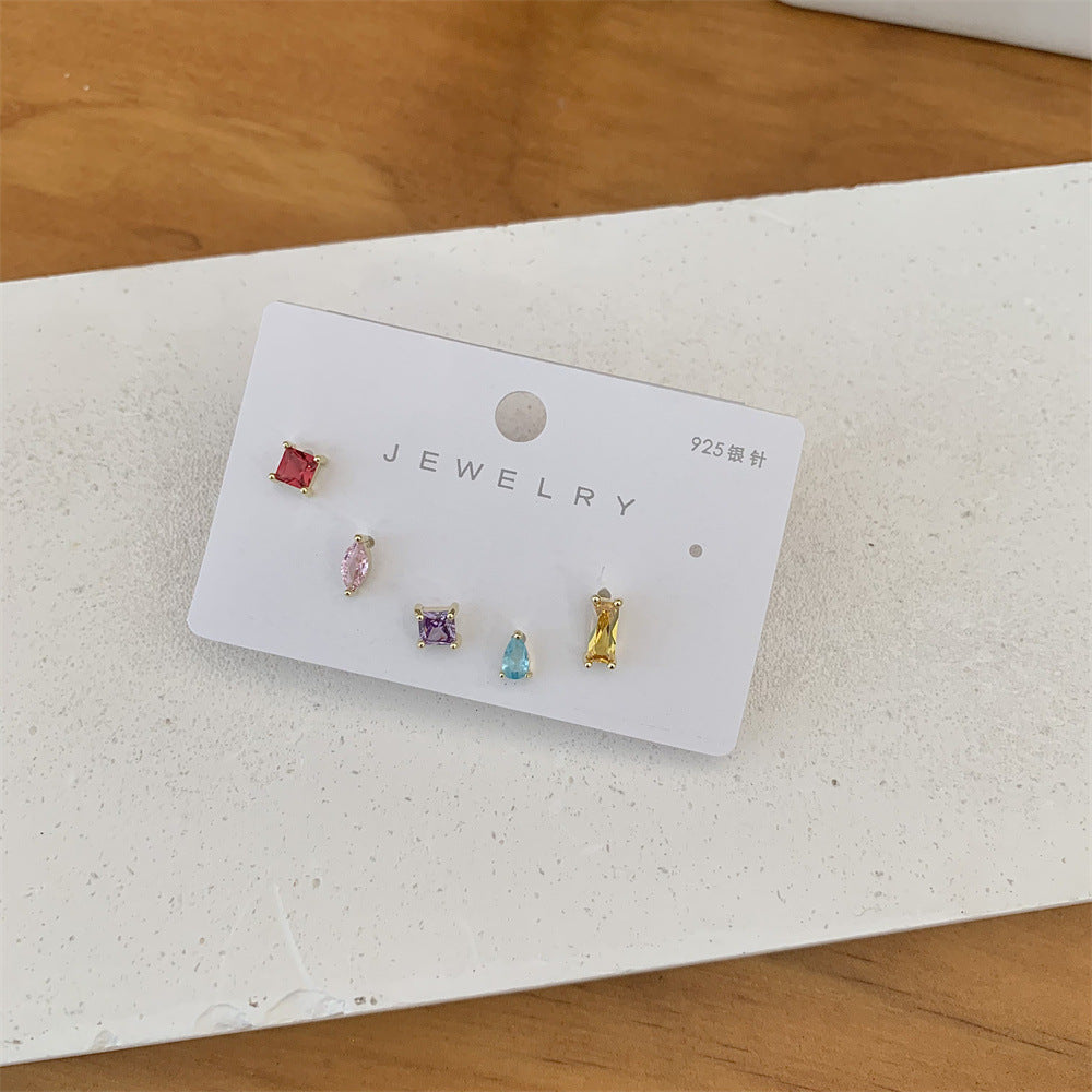 5 Piece Set Geometric Zirconia Stud Earrings with 925 Silver Posts