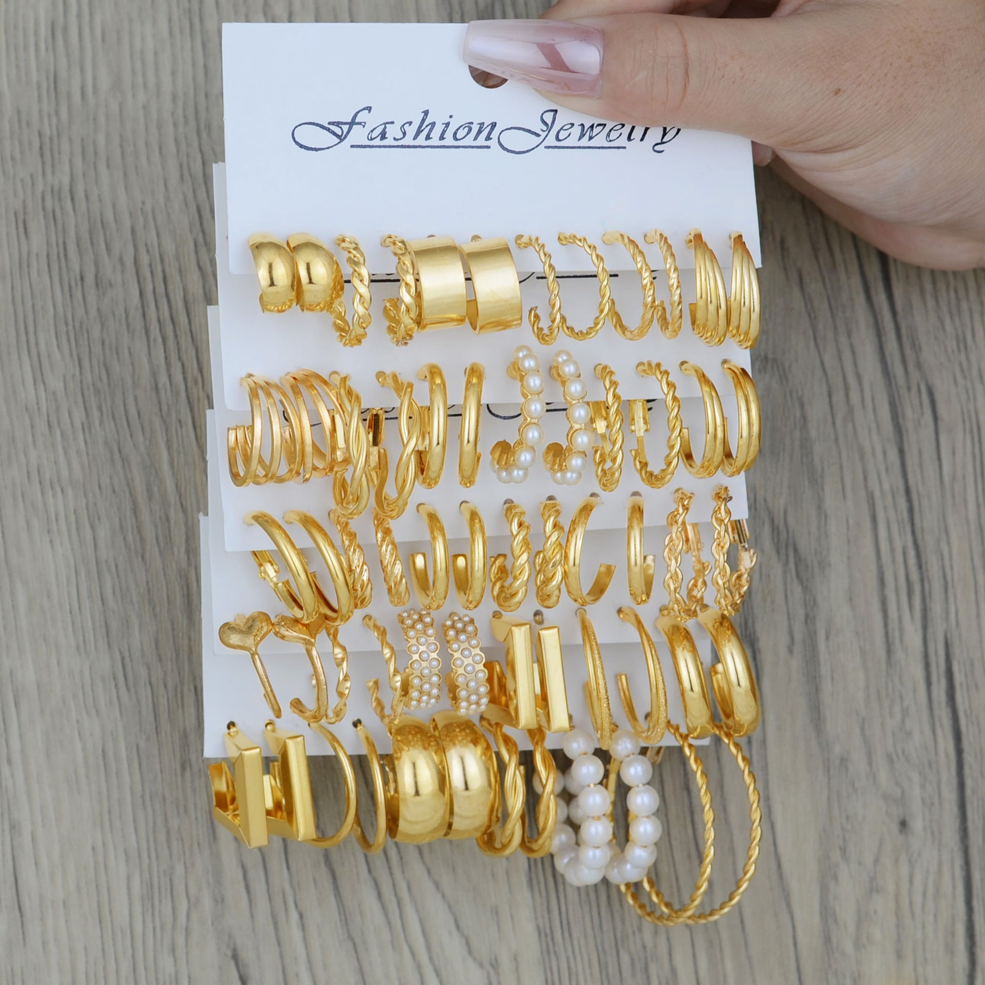 5 Sets Geometric Alloy Hoop and Pearl Earrings Set