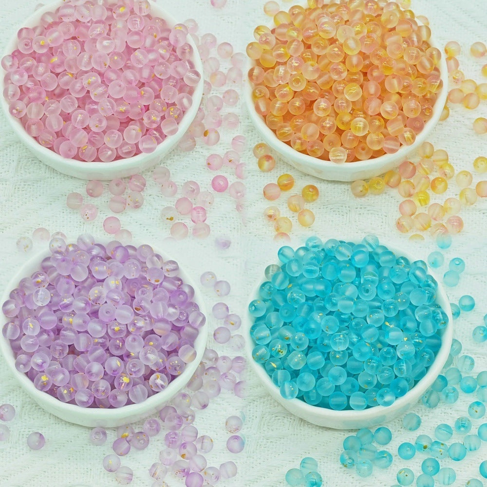 50 PCS 6mm Premium Transparent Frosted Glass Round Beads for DIY Jewelry Making