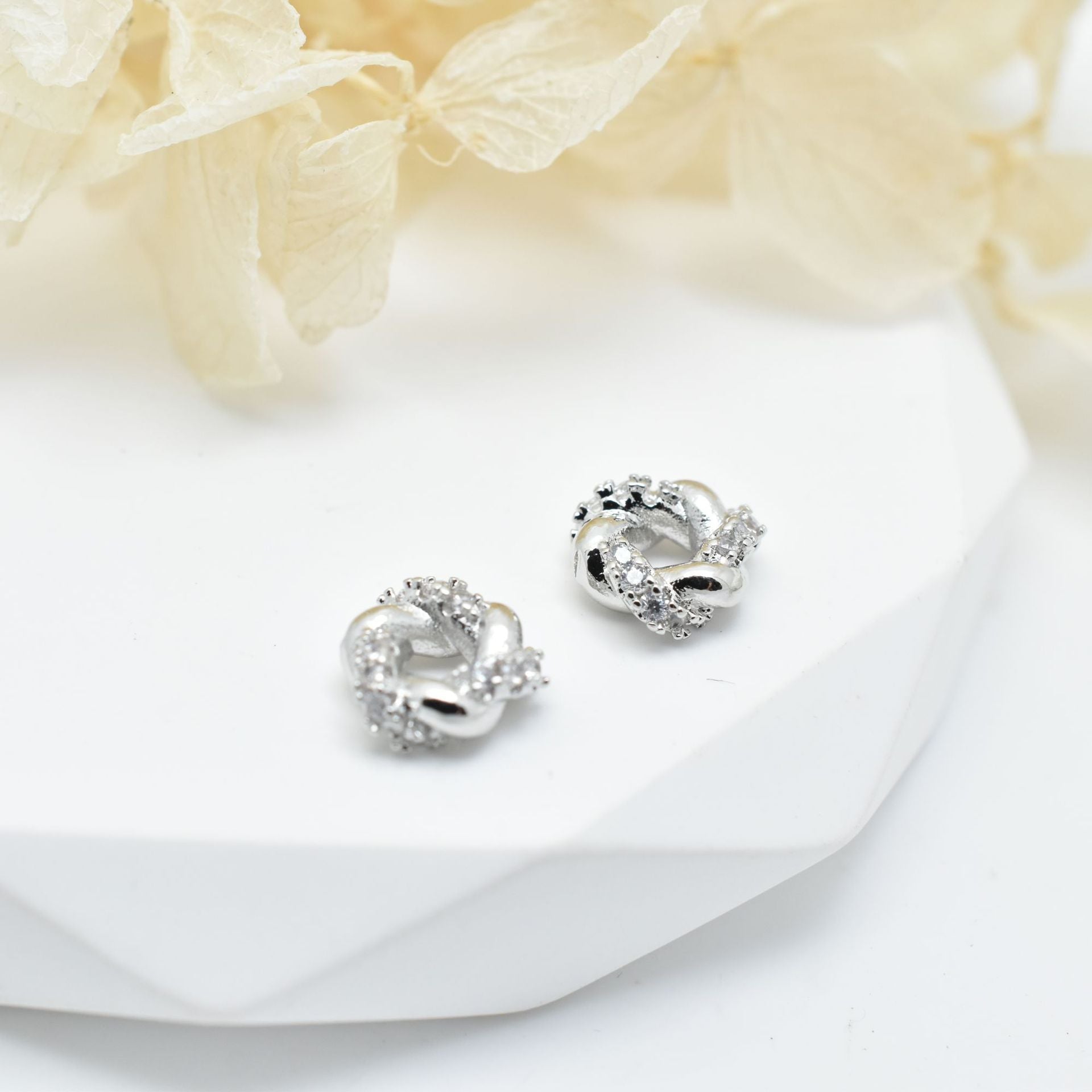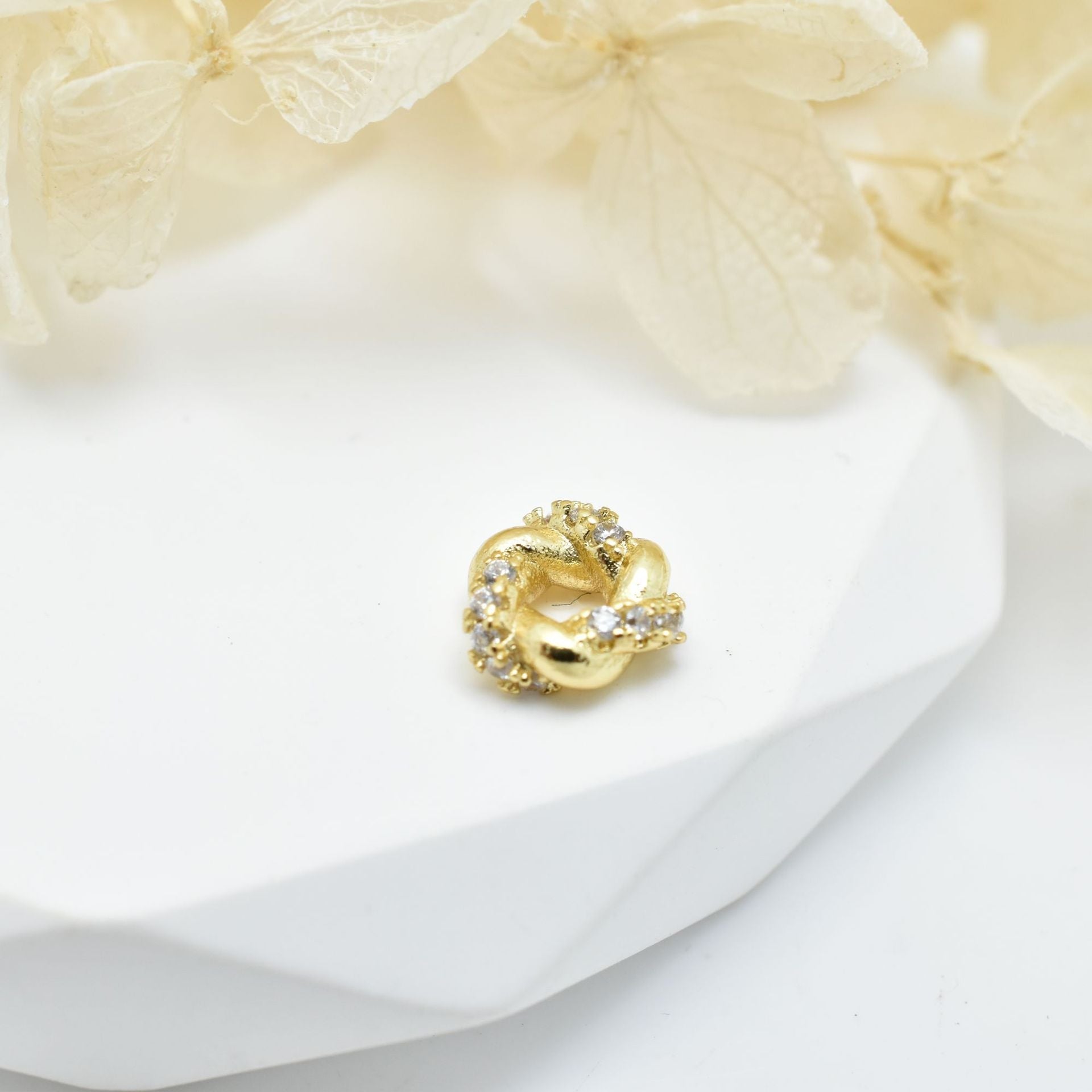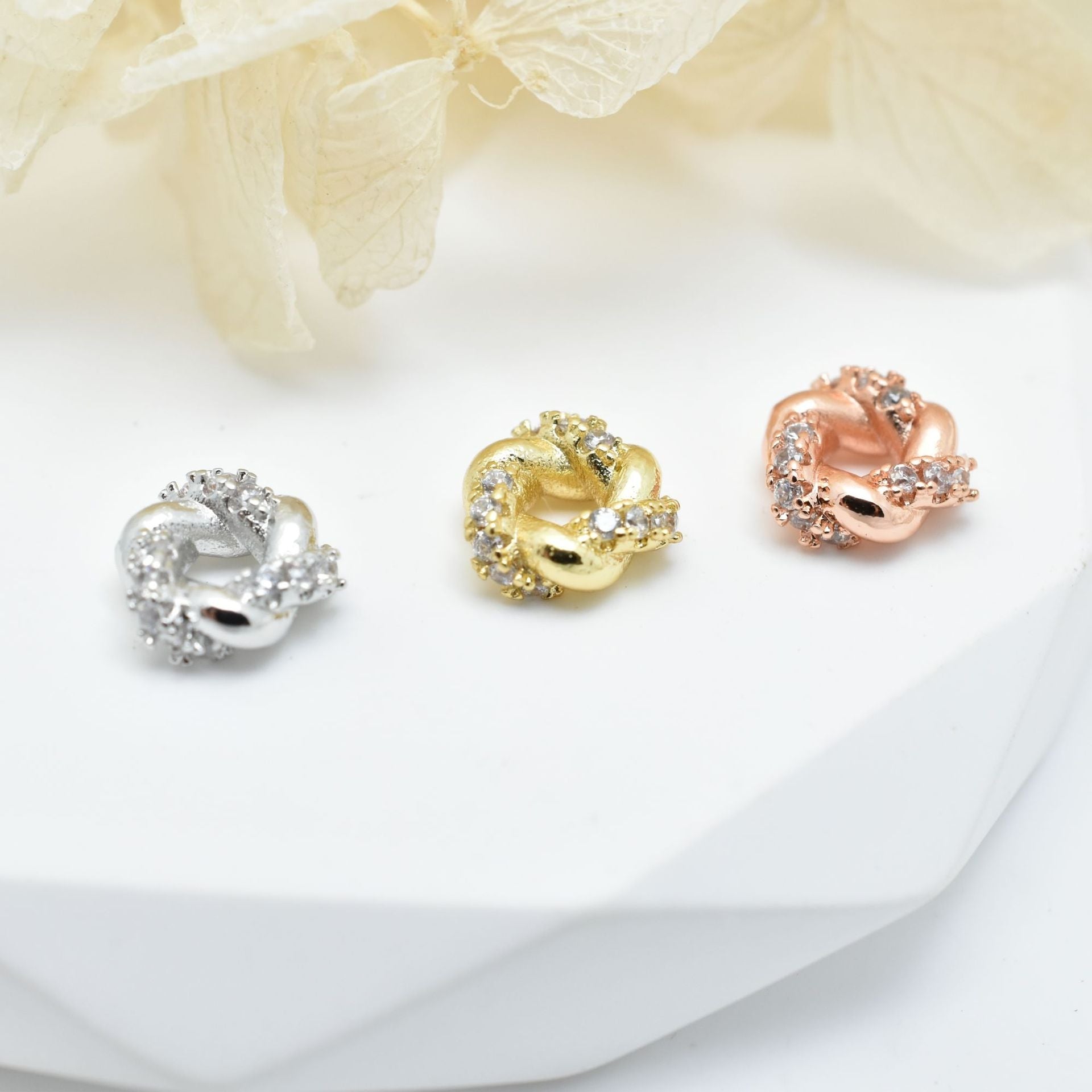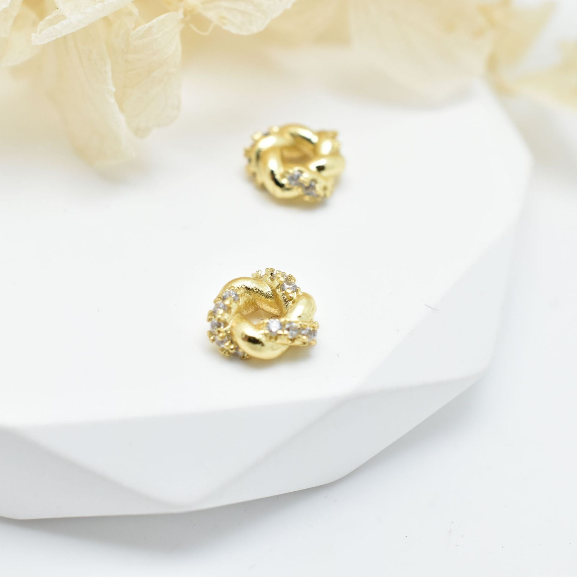 30-Pack 8mm Copper Zircon Geometric Beads with Flower Shape Bead Caps for DIY Jewelry Making
