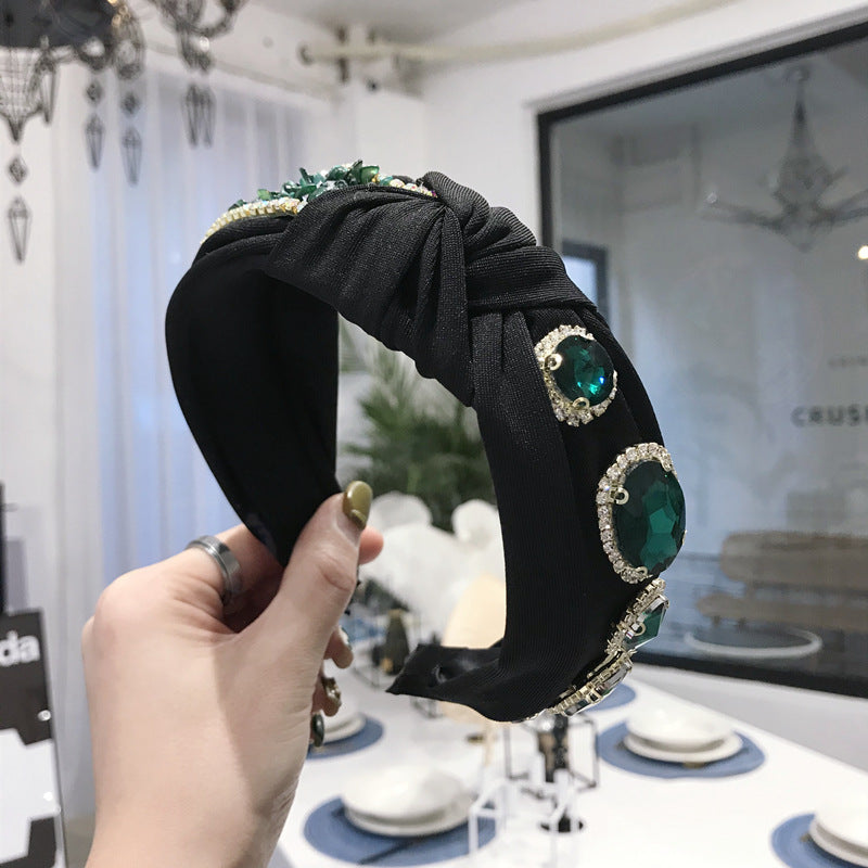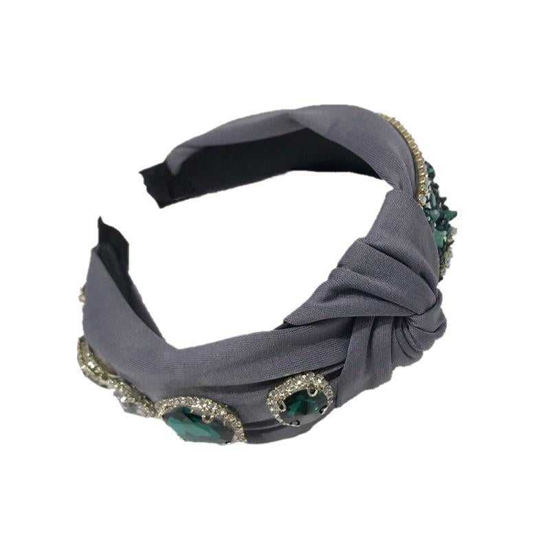 Baroque Emerald Knit Knotted Wide Headband with Rhinestones