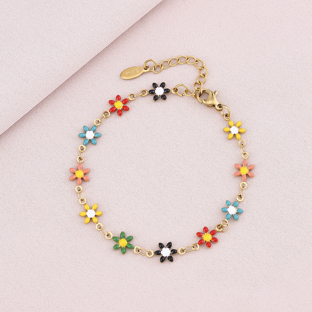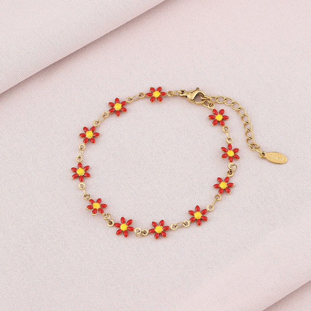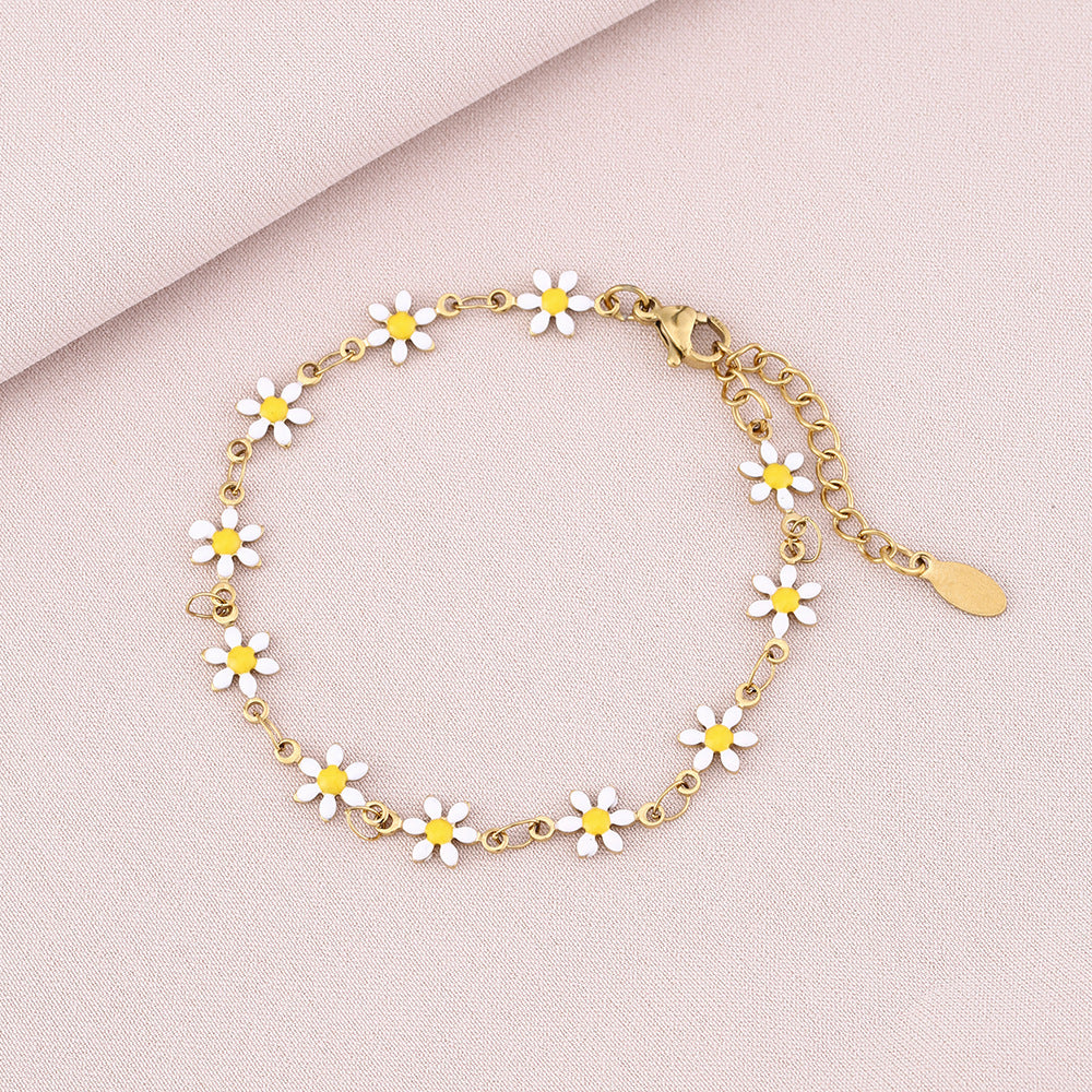 18K Gold Plated Stainless Steel Geometric Flower Bracelet for Women