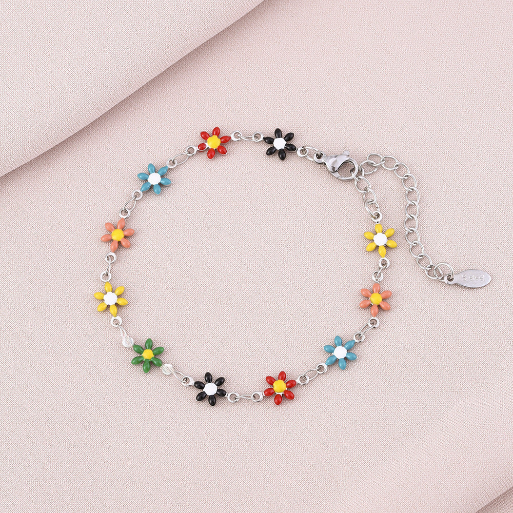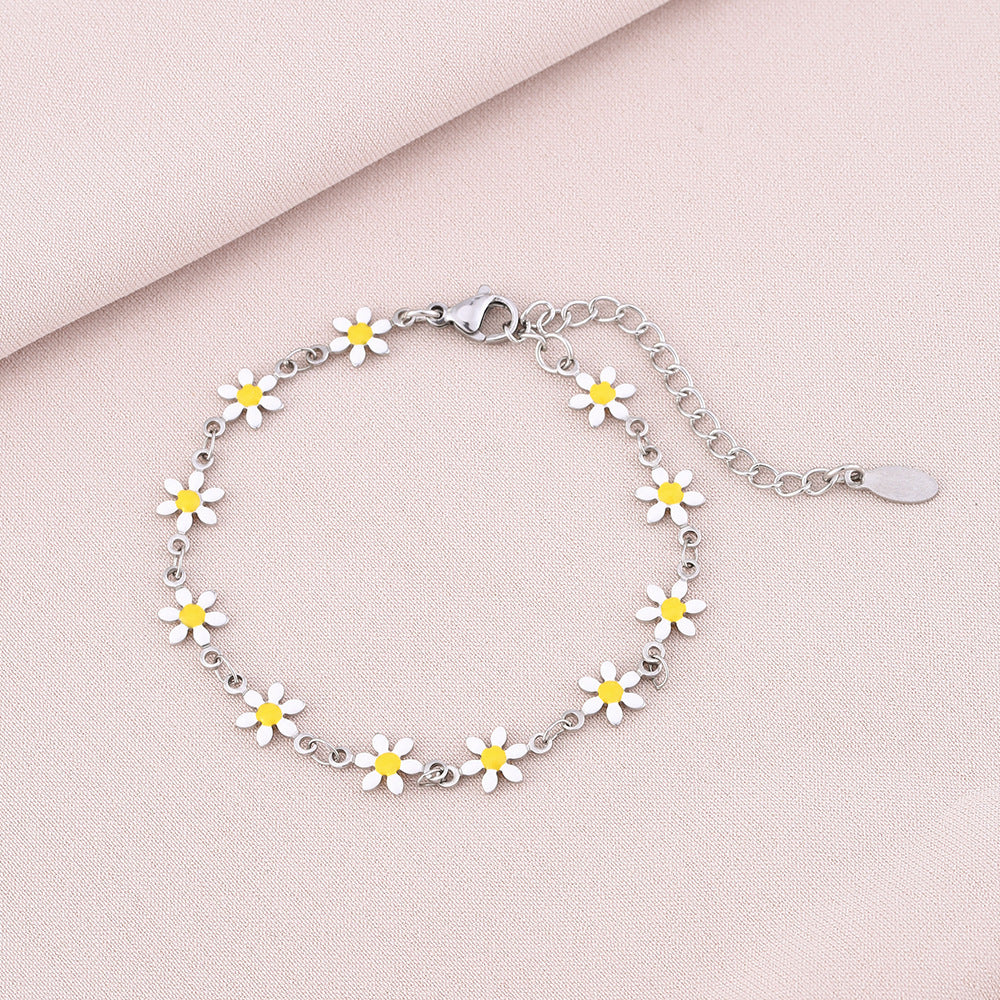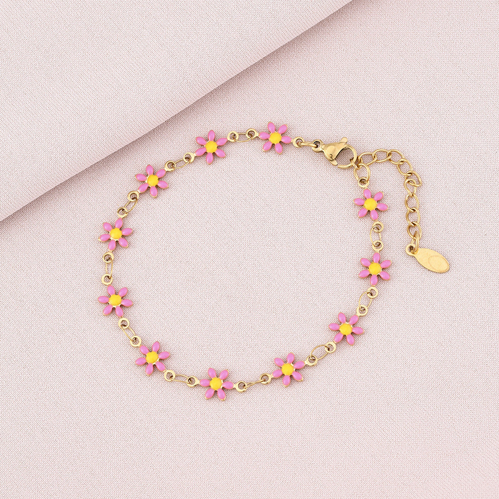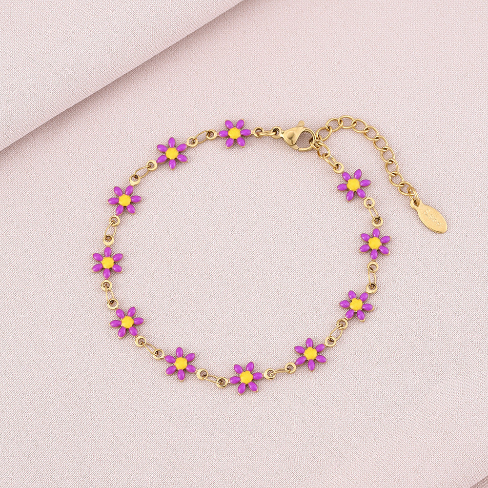 18K Gold Plated Stainless Steel Geometric Flower Bracelet for Women