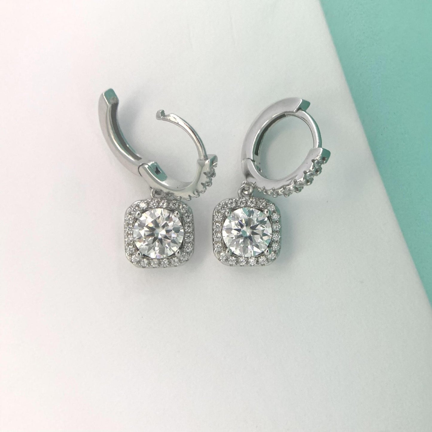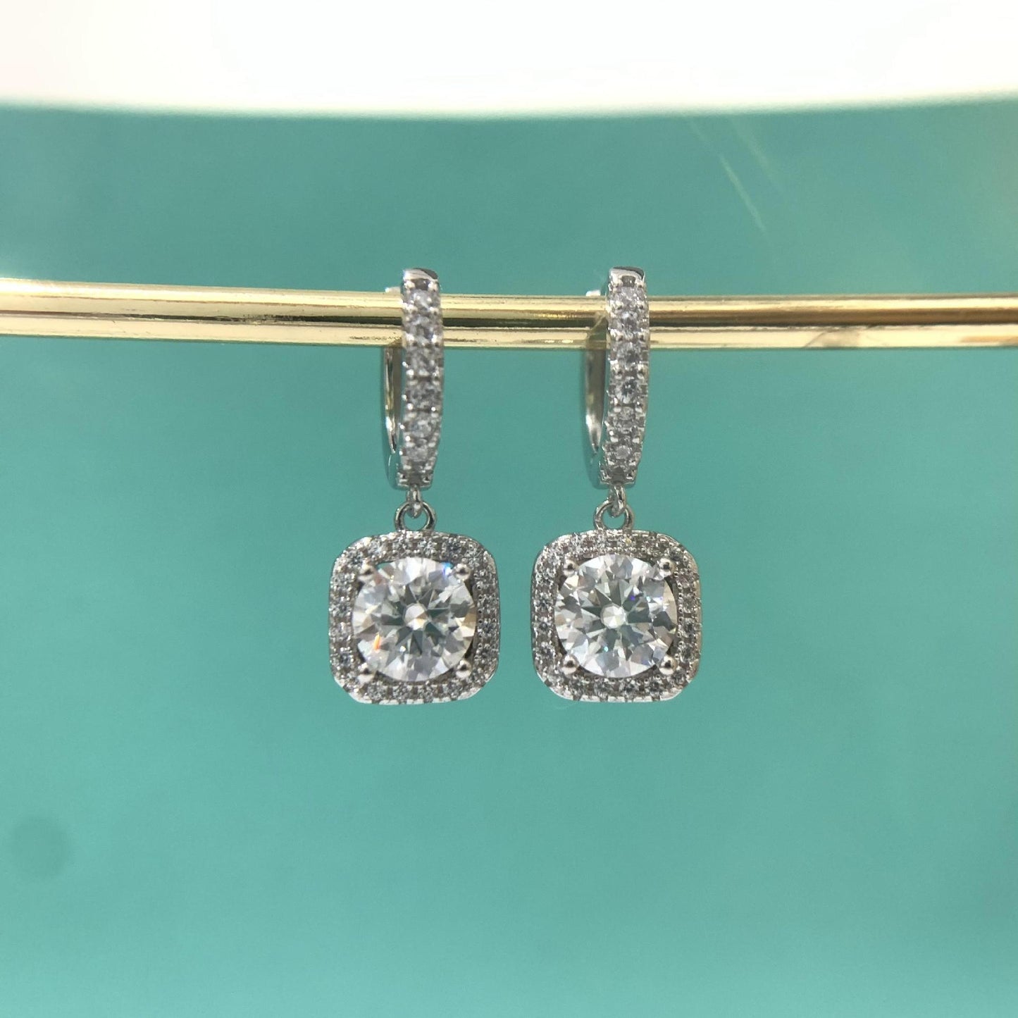 Classic Geometric Sterling Silver Moissanite Drop Earrings