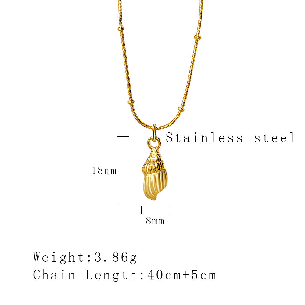 18K Gold Plated Conch Pendant Necklace with Stainless Steel Snake Chain