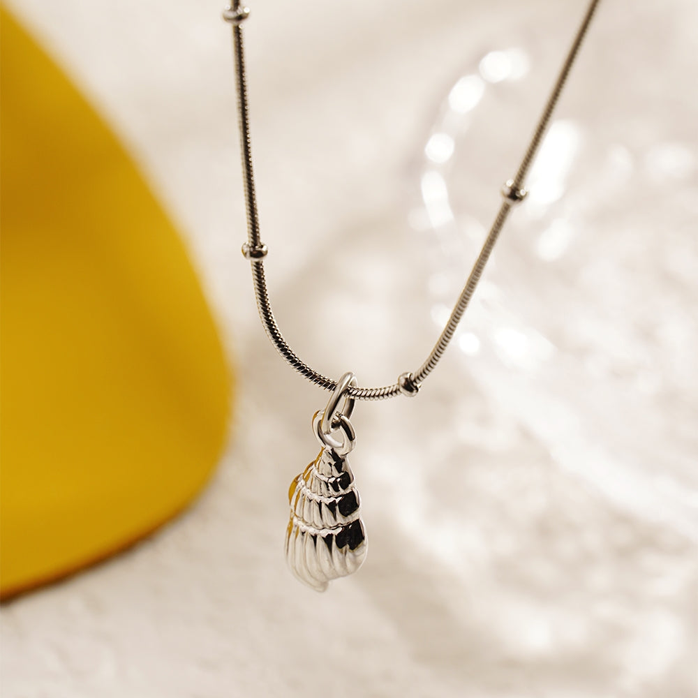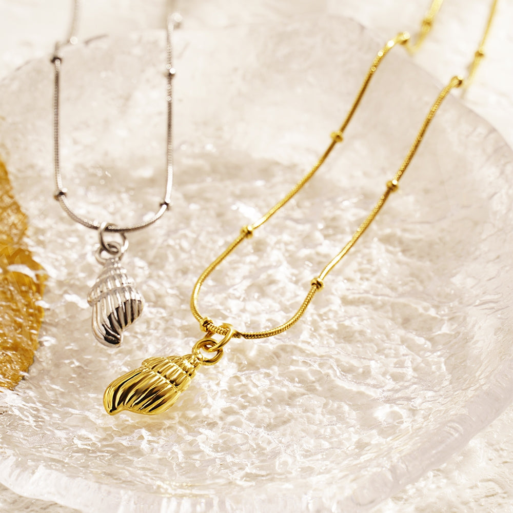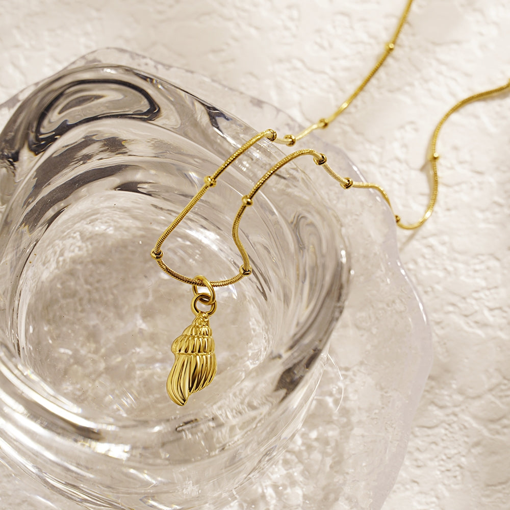 18K Gold Plated Conch Pendant Necklace with Stainless Steel Snake Chain