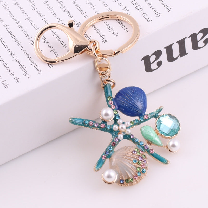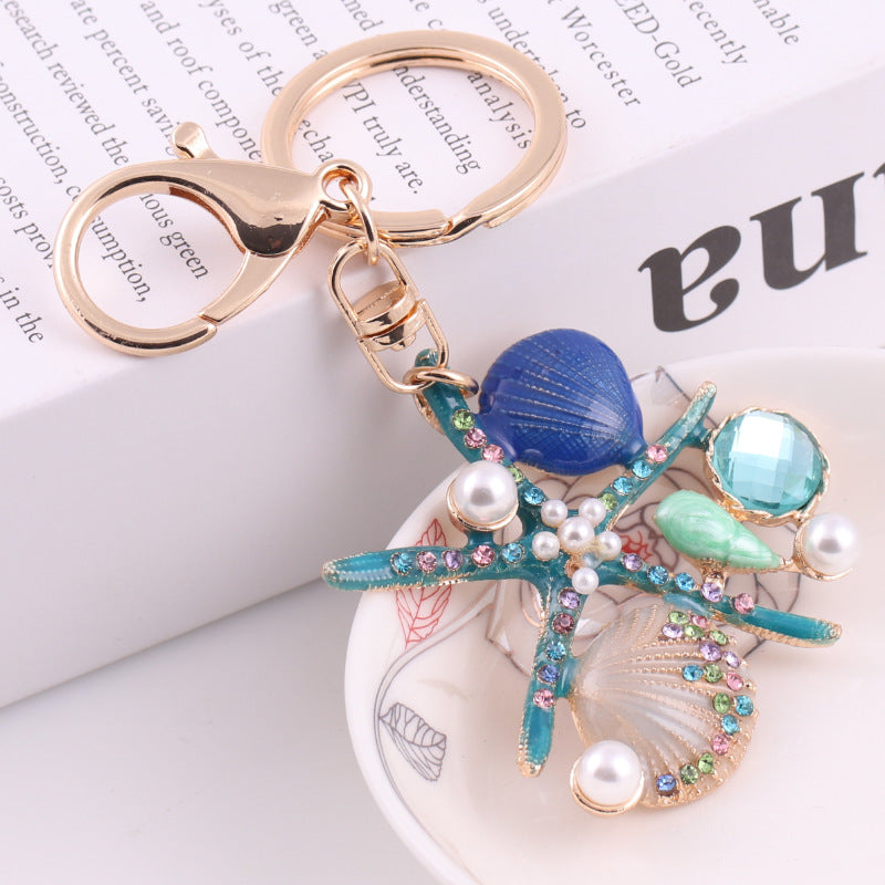 Beach Starfish Shell Rhinestone Pearl Keychain Necklace