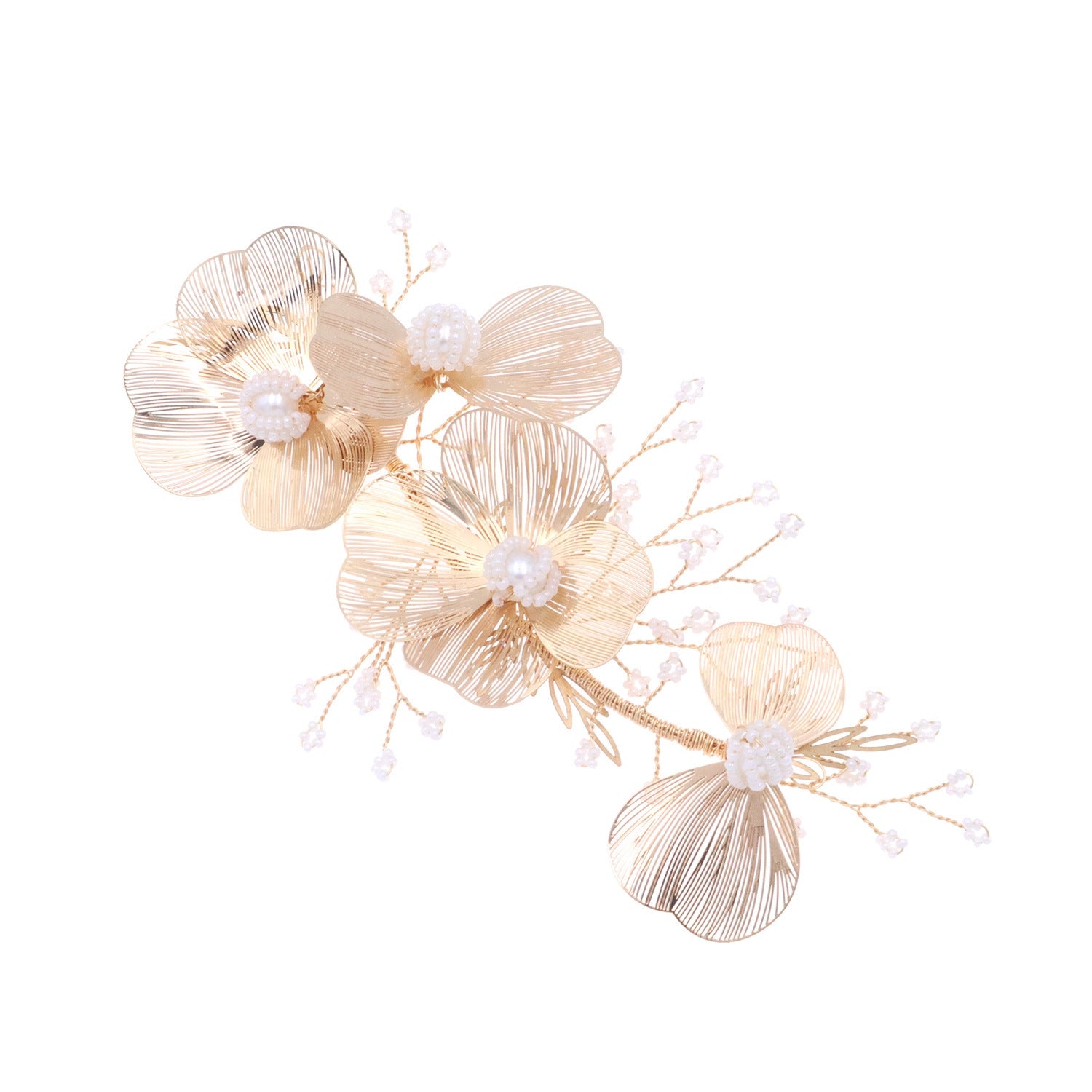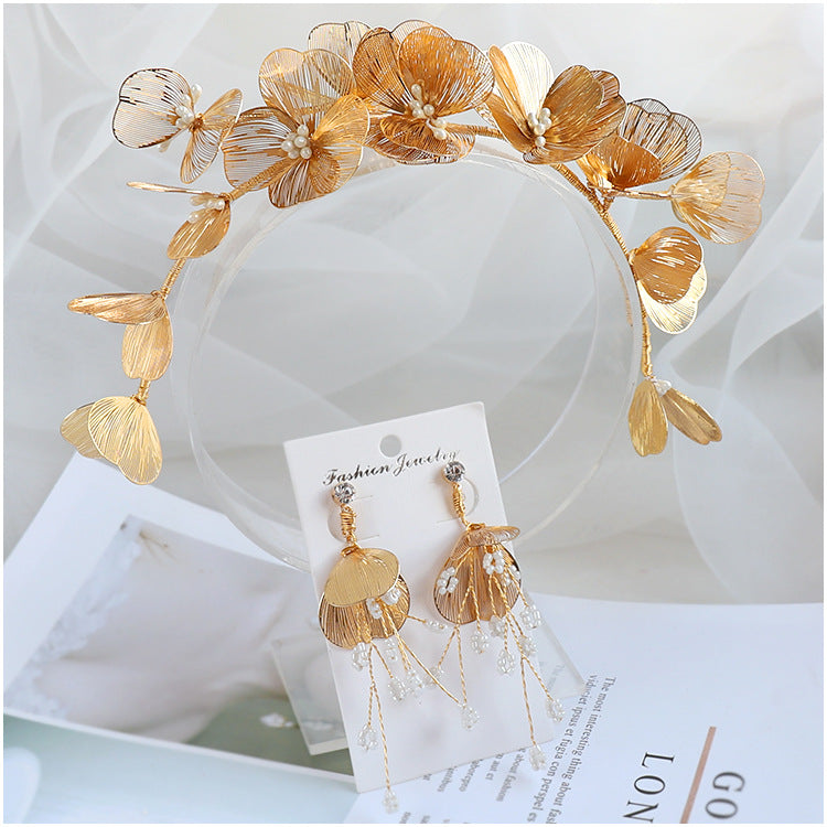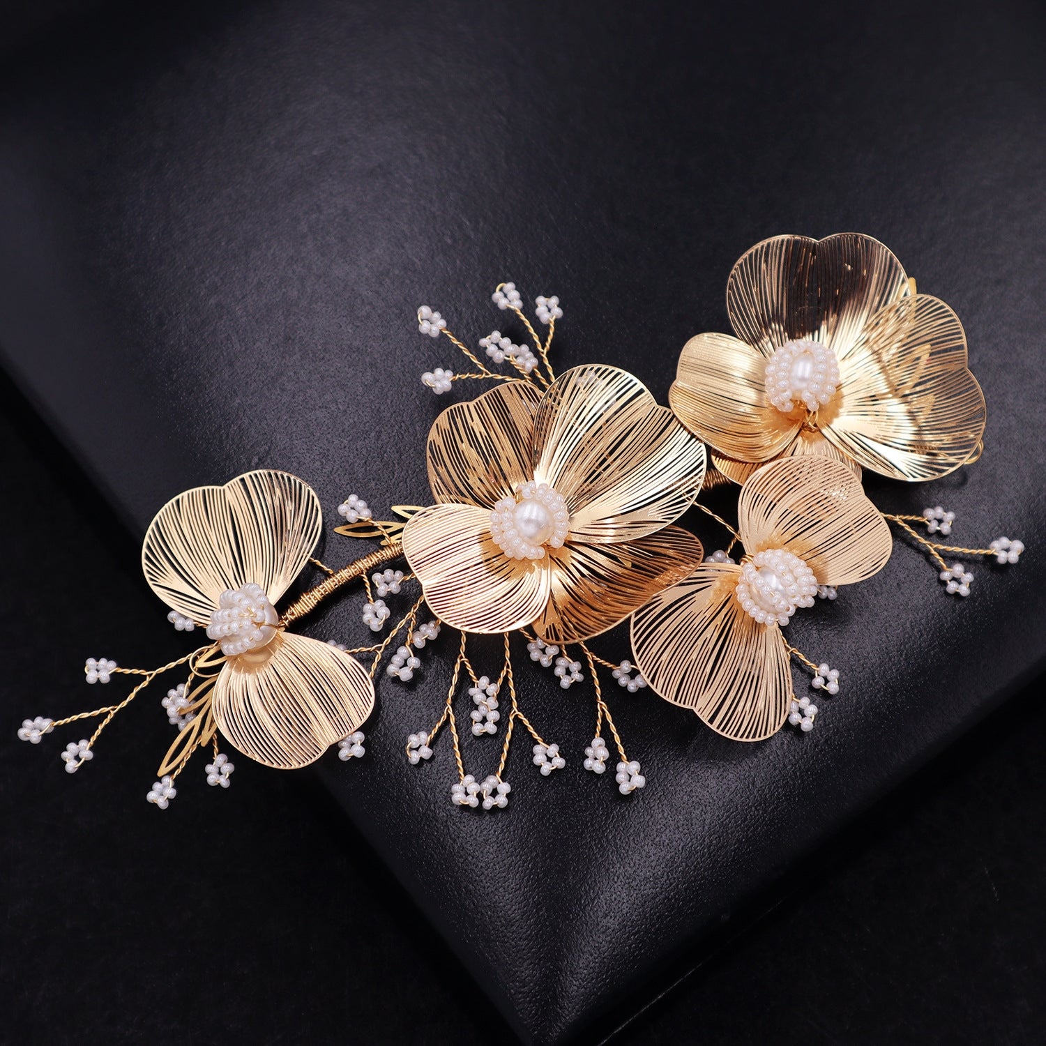 Bridal Gold Flower Hair and Earring Set for Wedding Dress Accessories