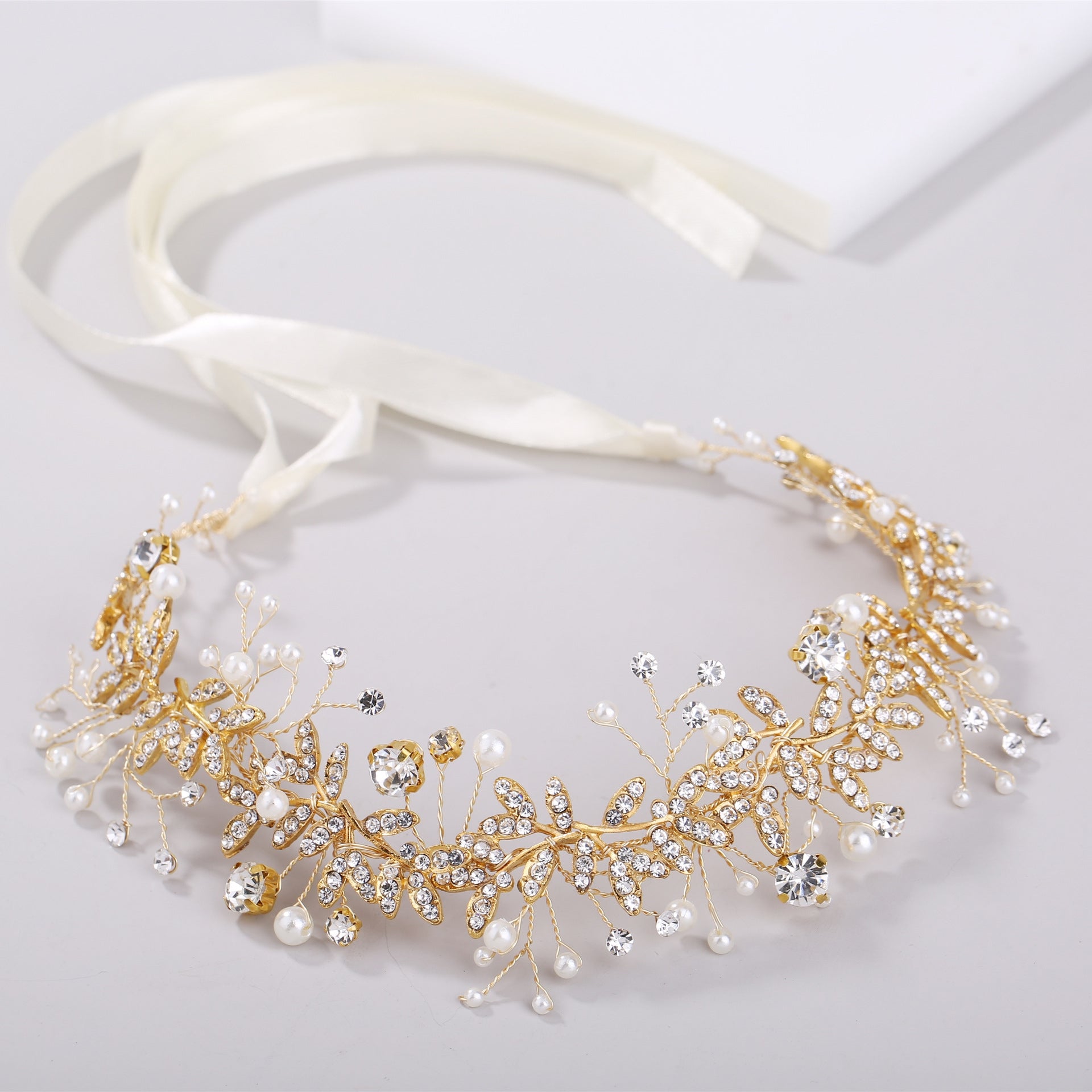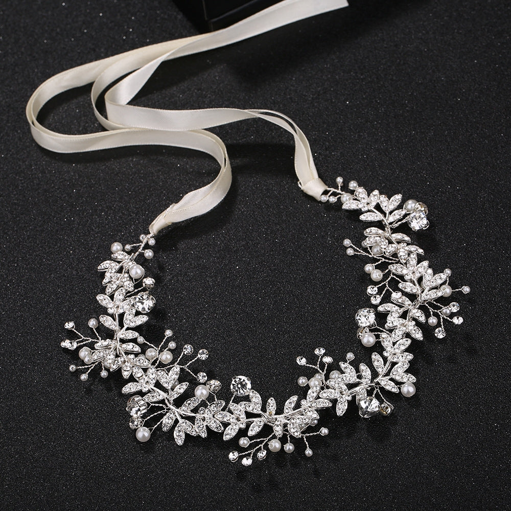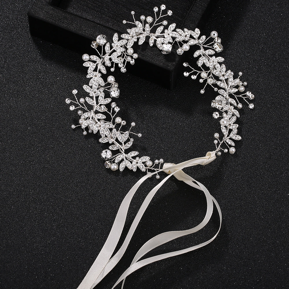 Bridal Leaf Alloy Pearl and Diamond Wedding Headband