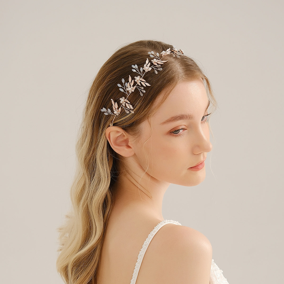 Bridal Leaf Crystal Hair Band with Handmade Jelly Rhinestones