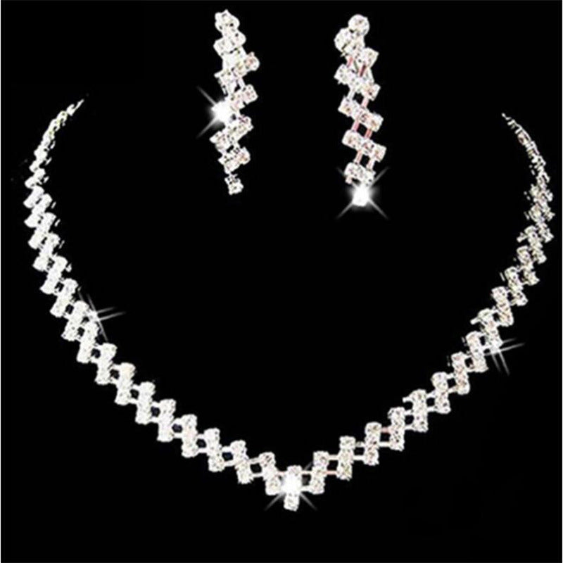 Bridal Rhinestone Jewelry Set - Glass Inlay Necklace and Earrings