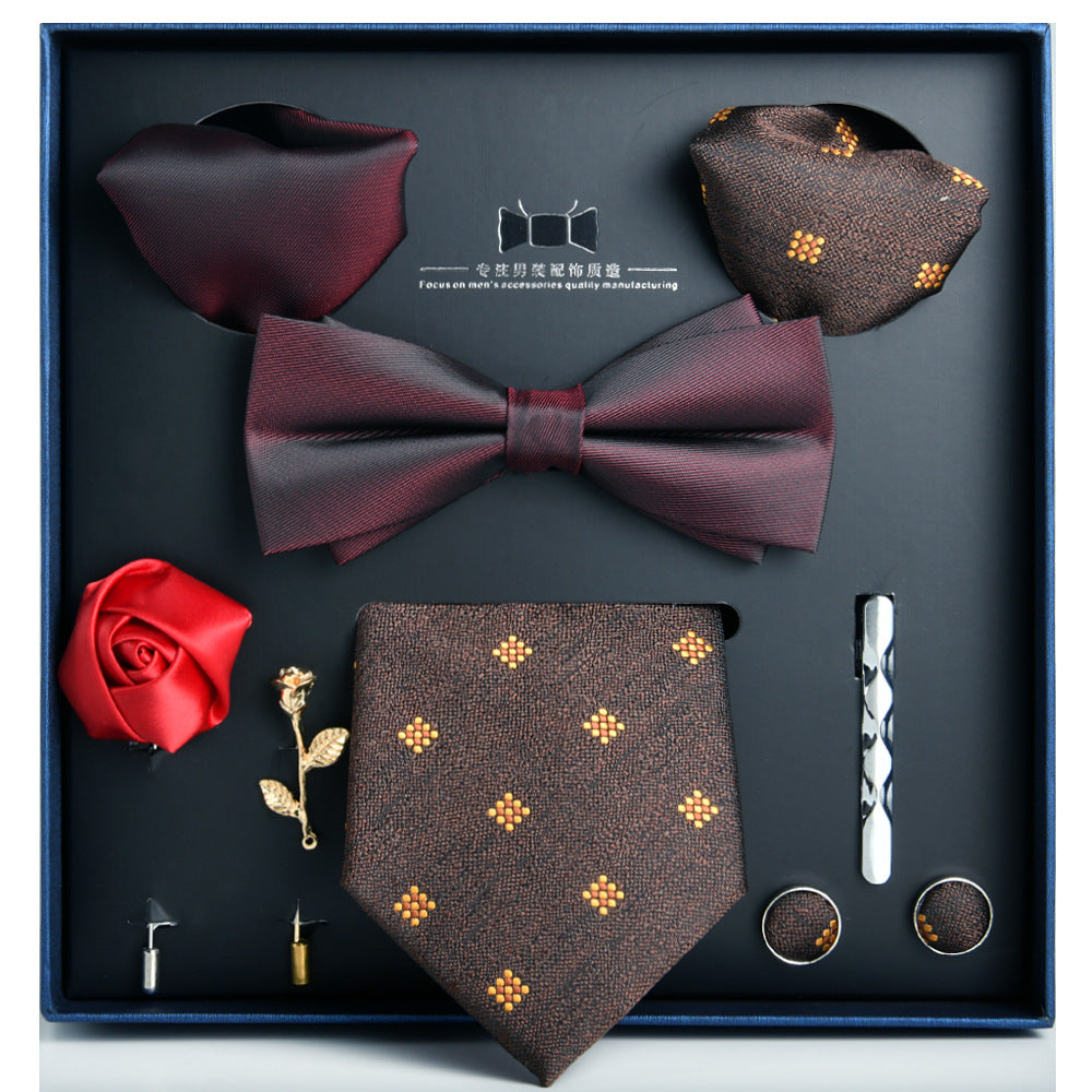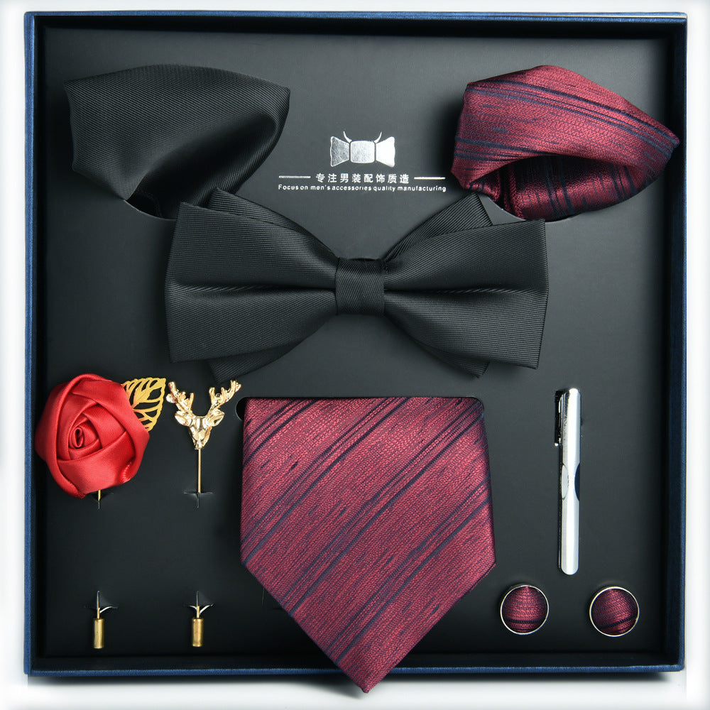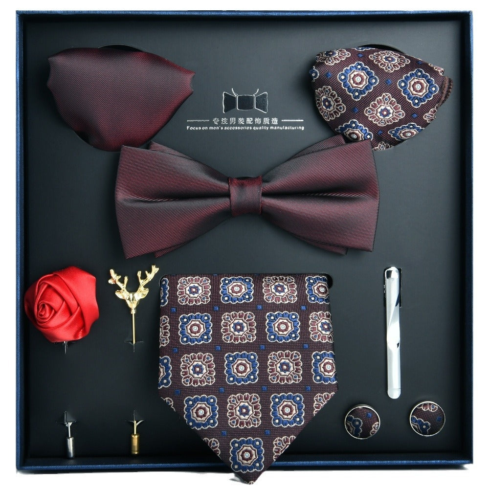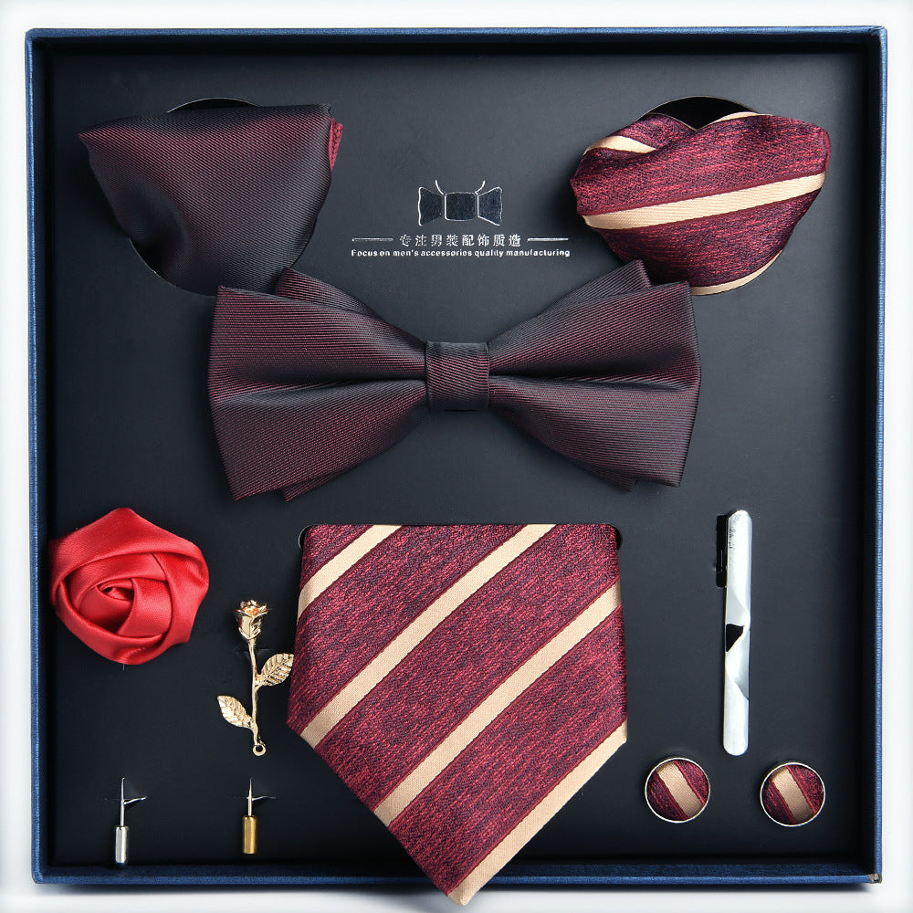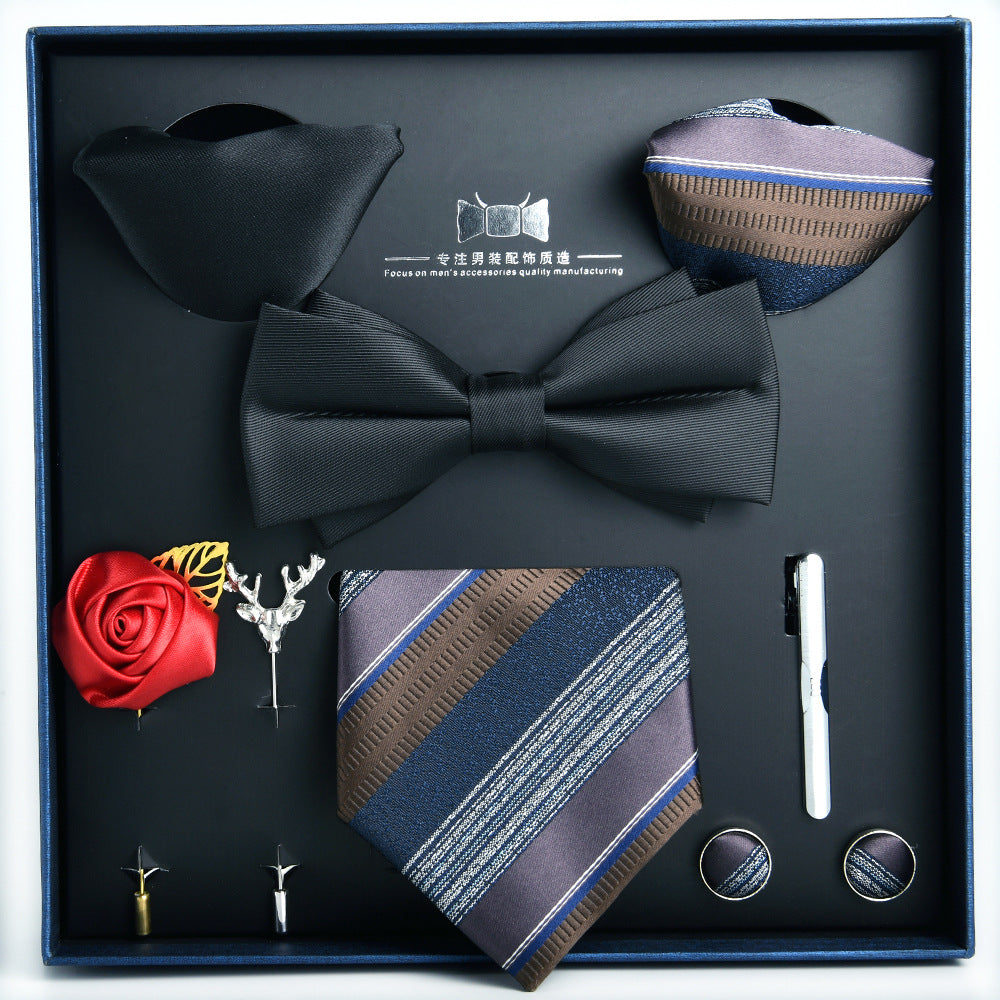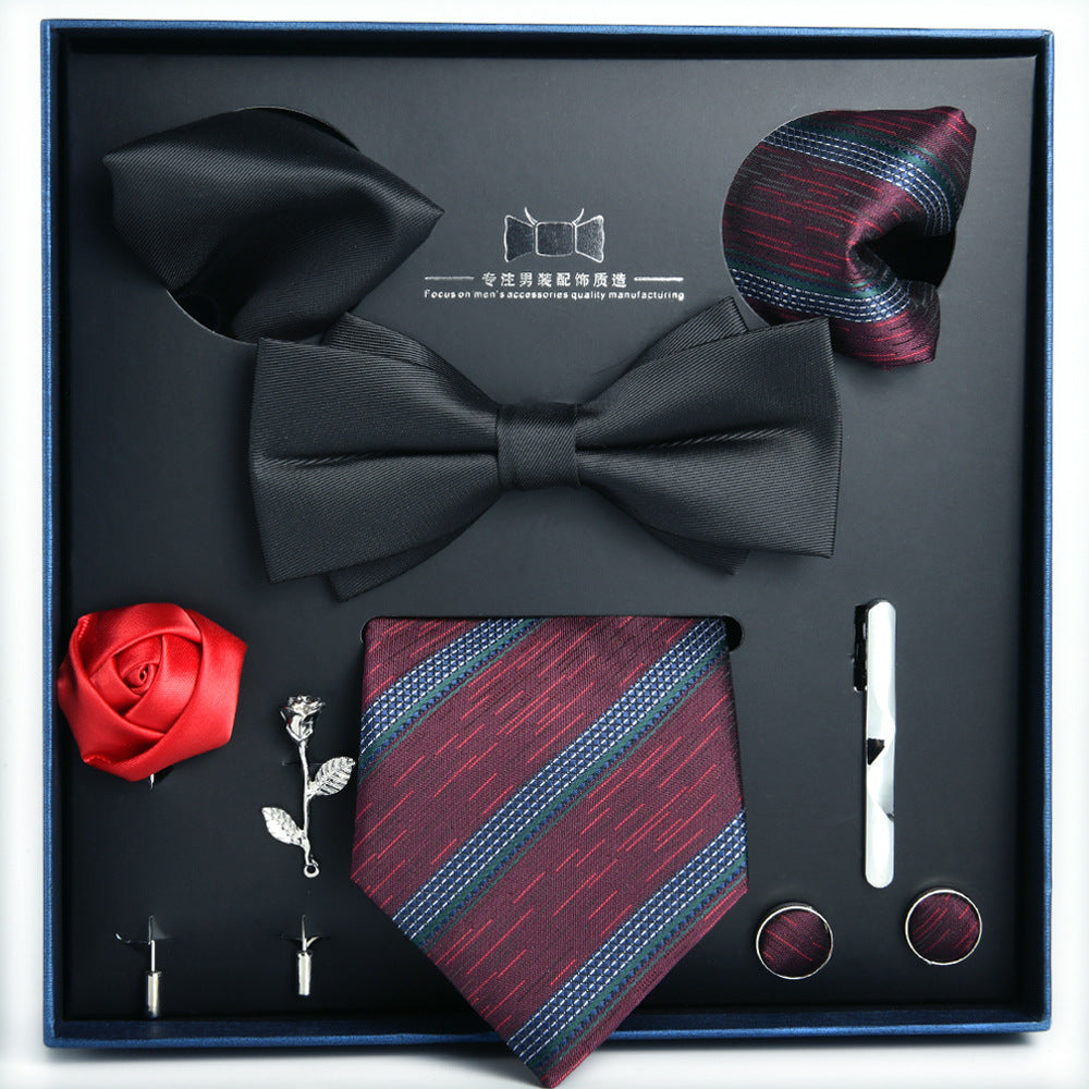 Business Stripe Polyester Men's Tie Gift Set - 8 Piece Collection for Weddings and Formal Occasions