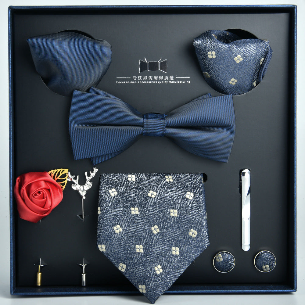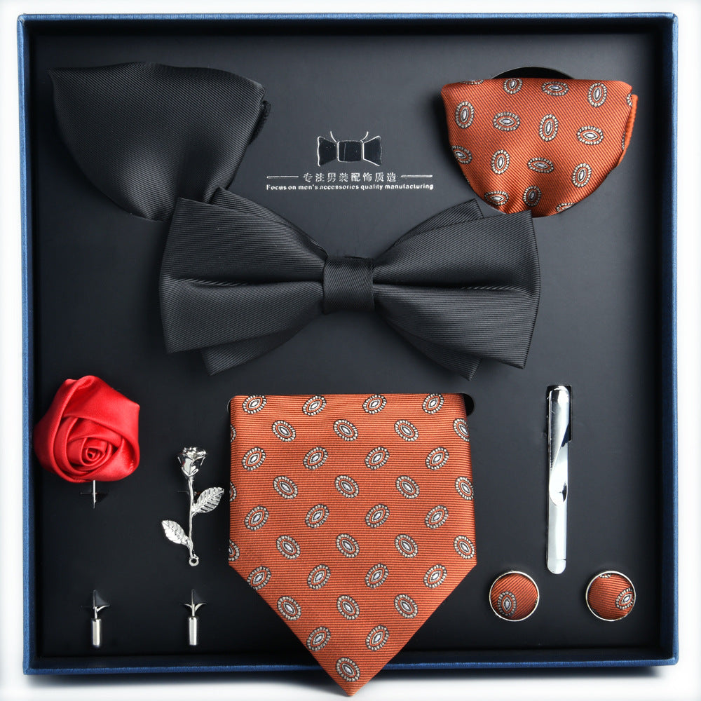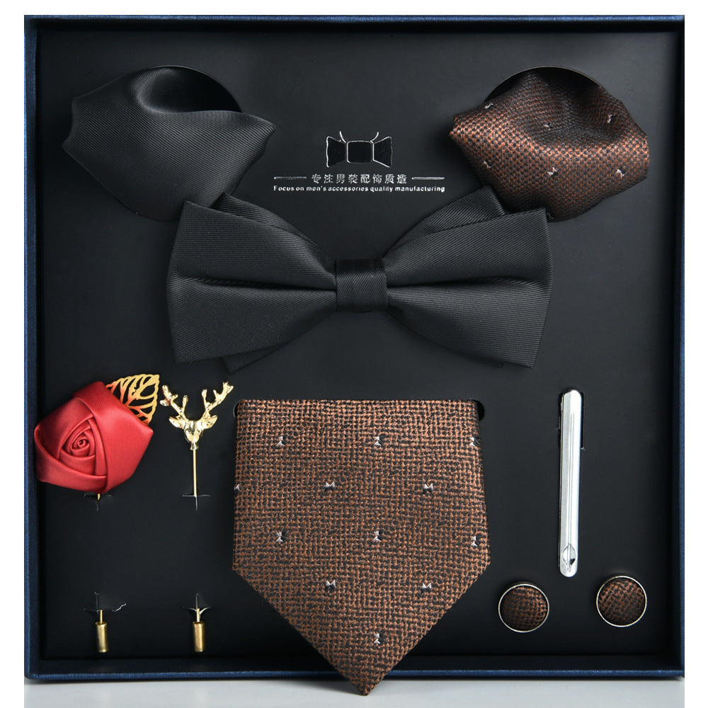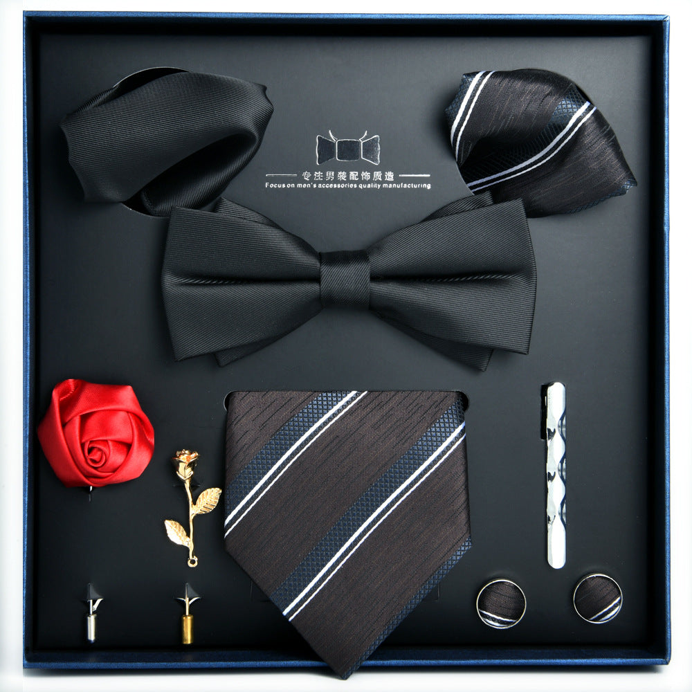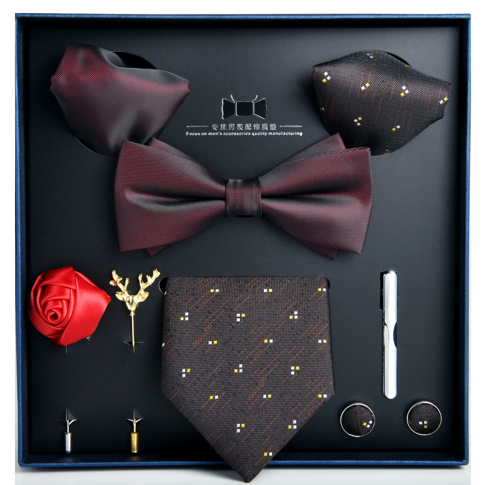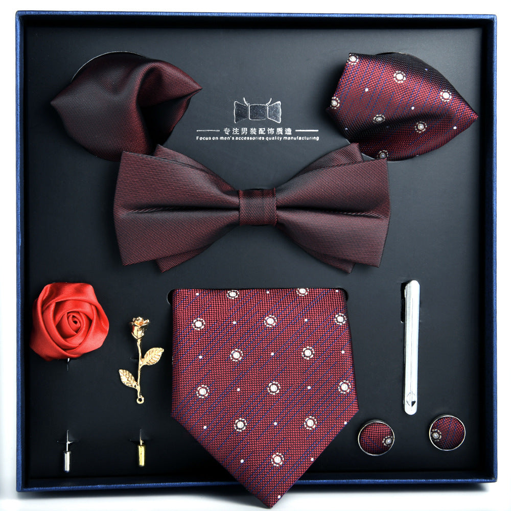 Business Stripe Polyester Men's Tie Gift Set - 8 Piece Collection for Weddings and Formal Occasions