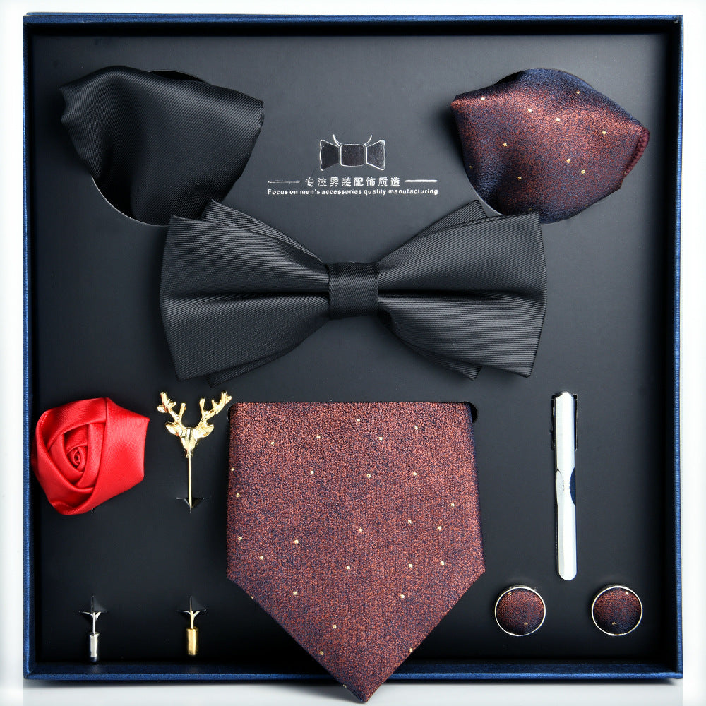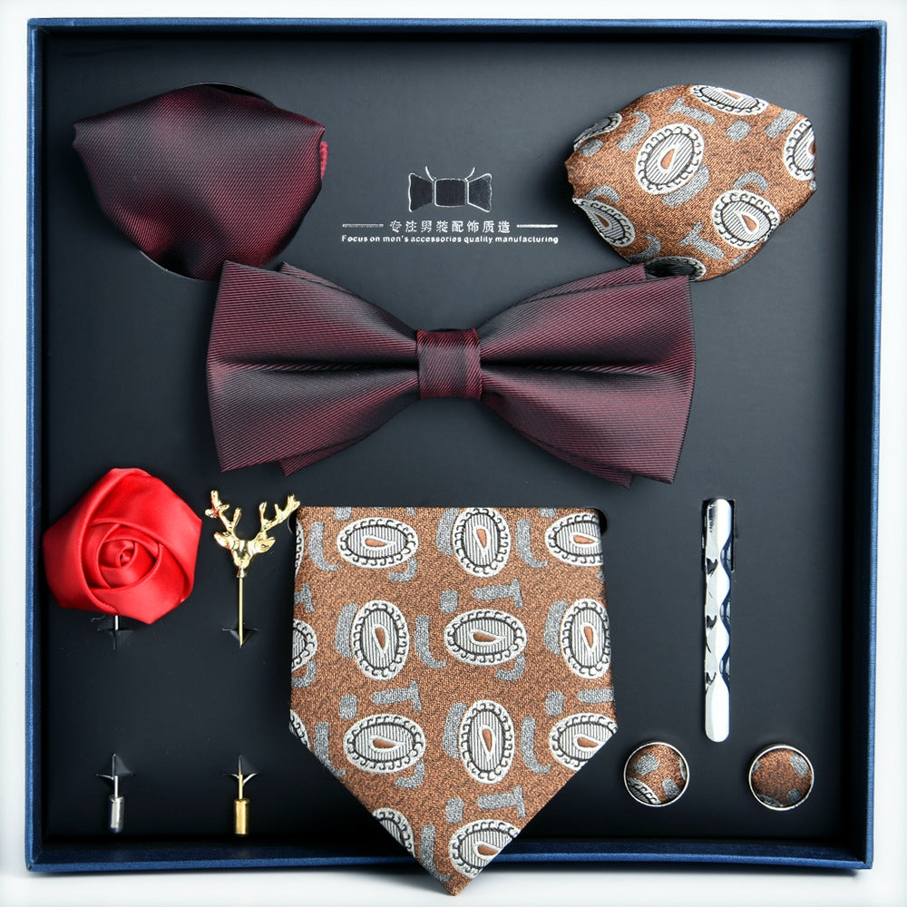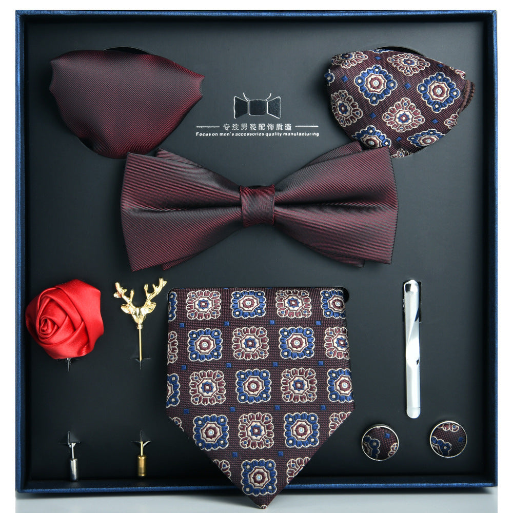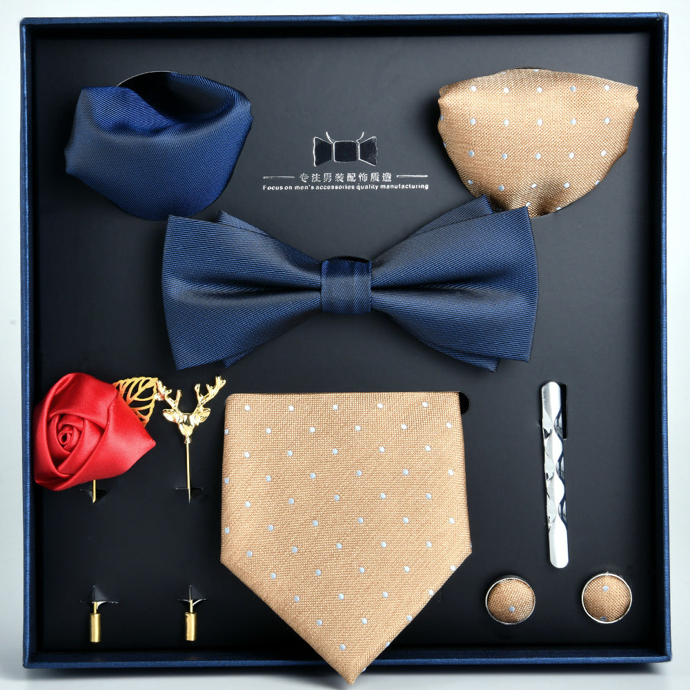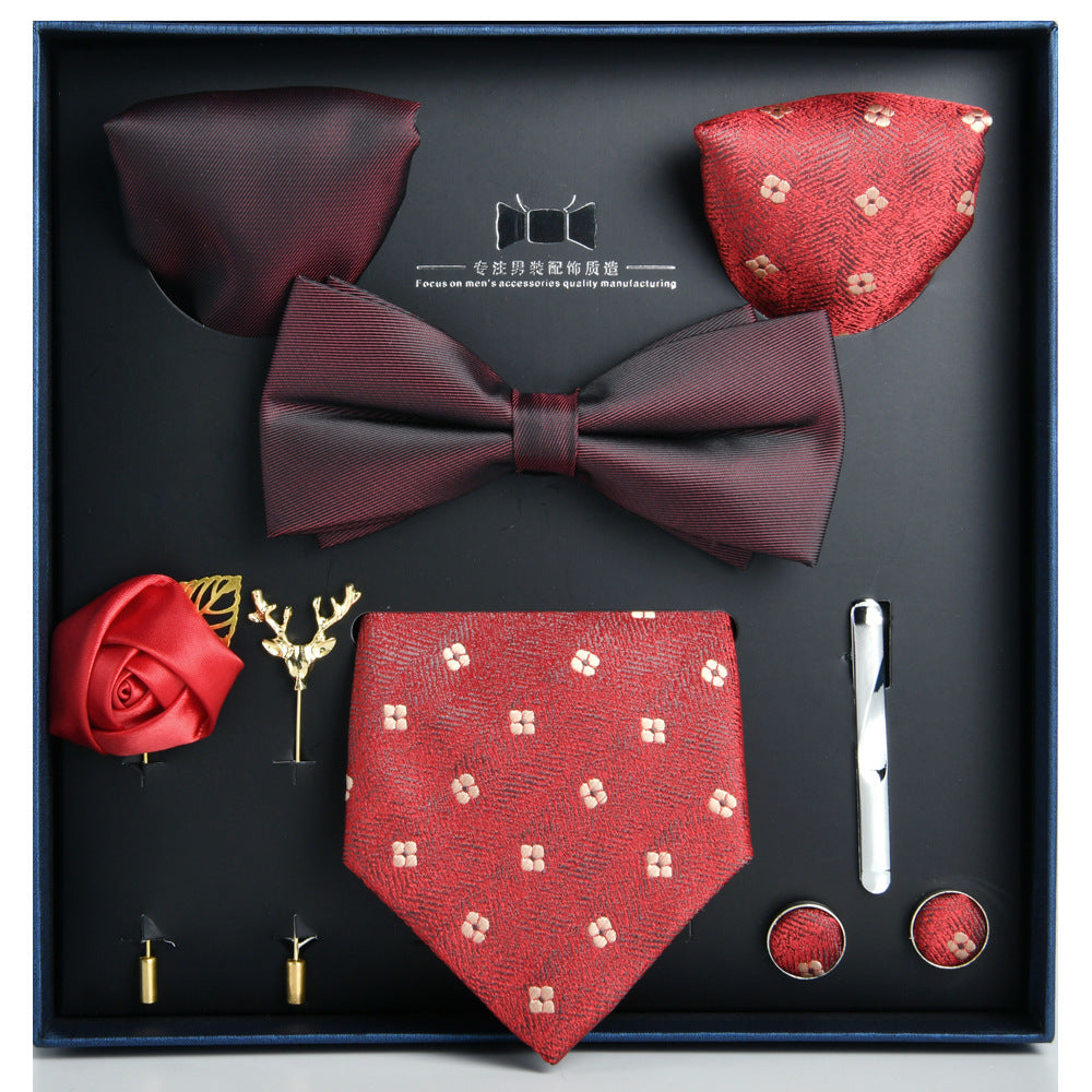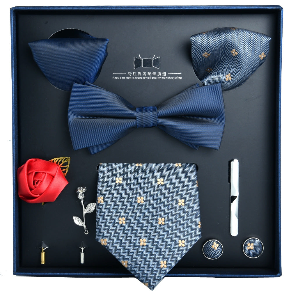 Business Stripe Polyester Men's Tie Gift Set - 8 Piece Collection for Weddings and Formal Occasions