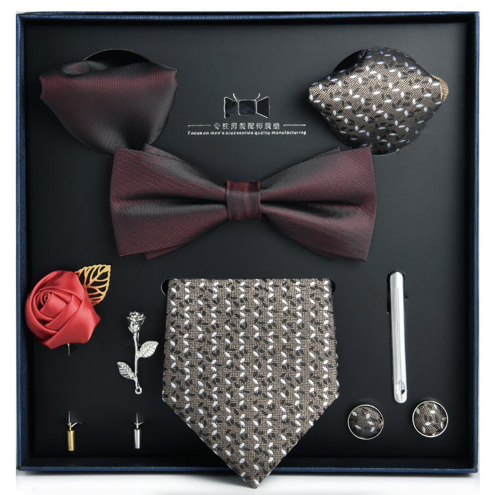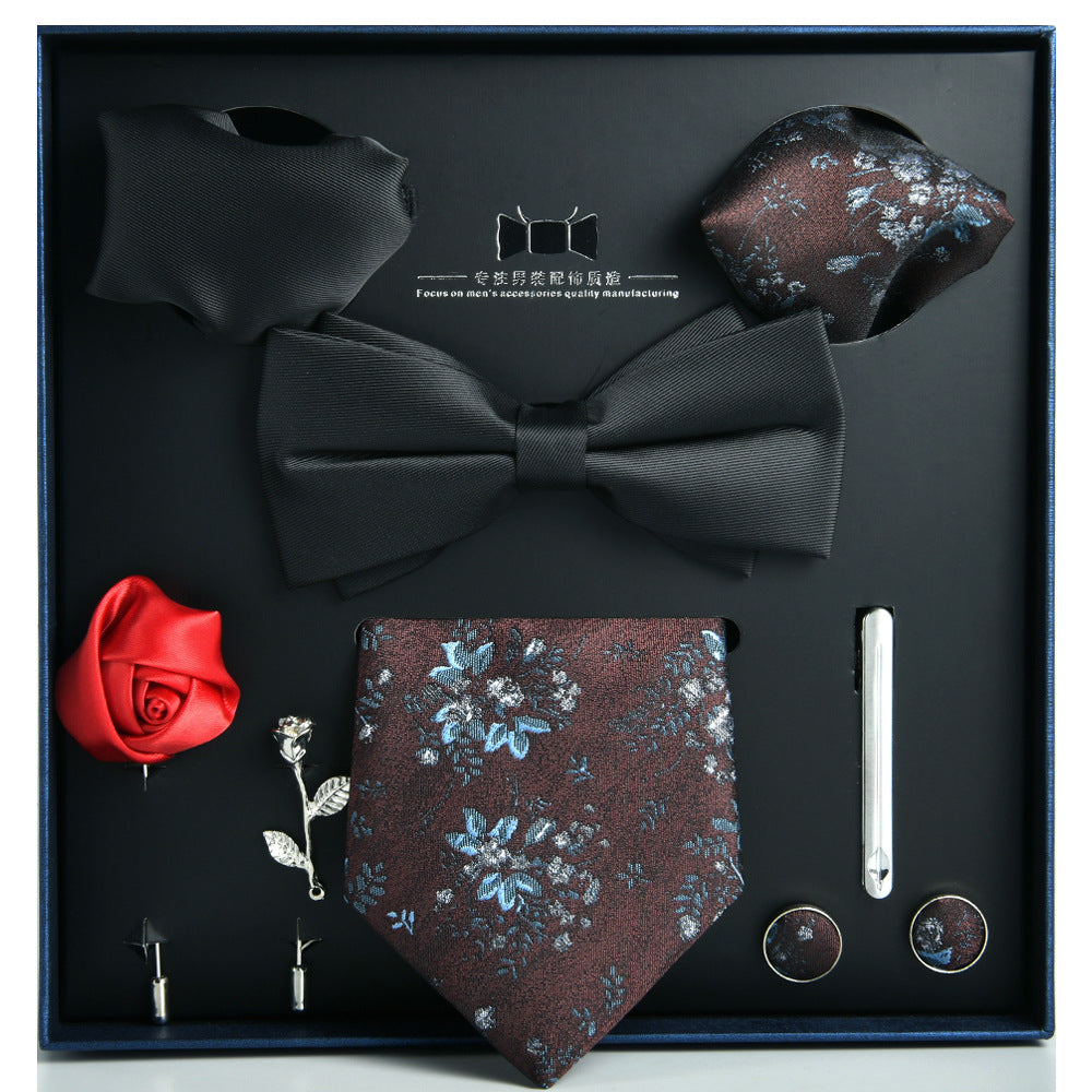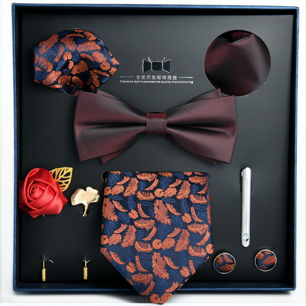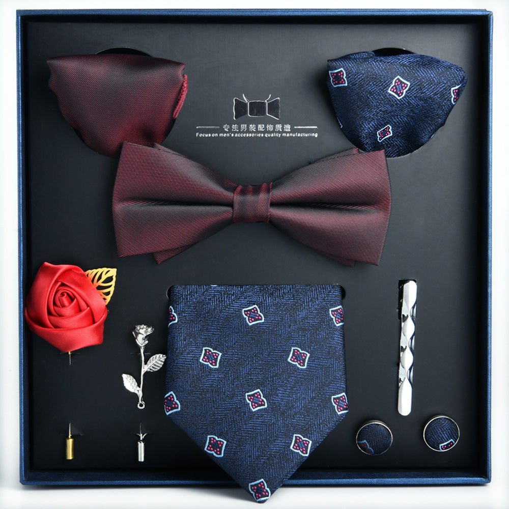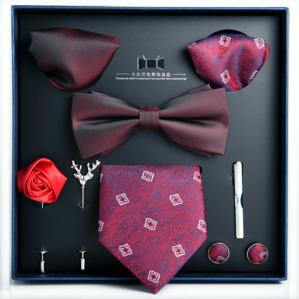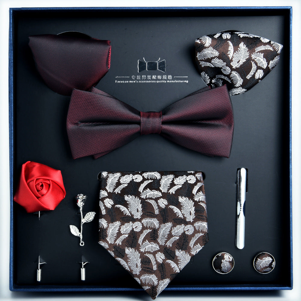 Business Stripe Polyester Men's Tie Gift Set - 8 Piece Collection for Weddings and Formal Occasions