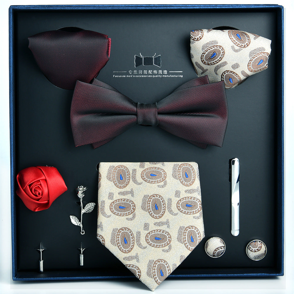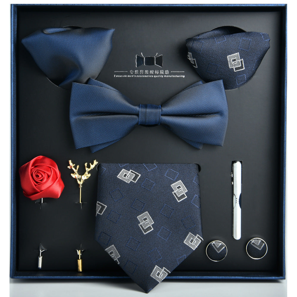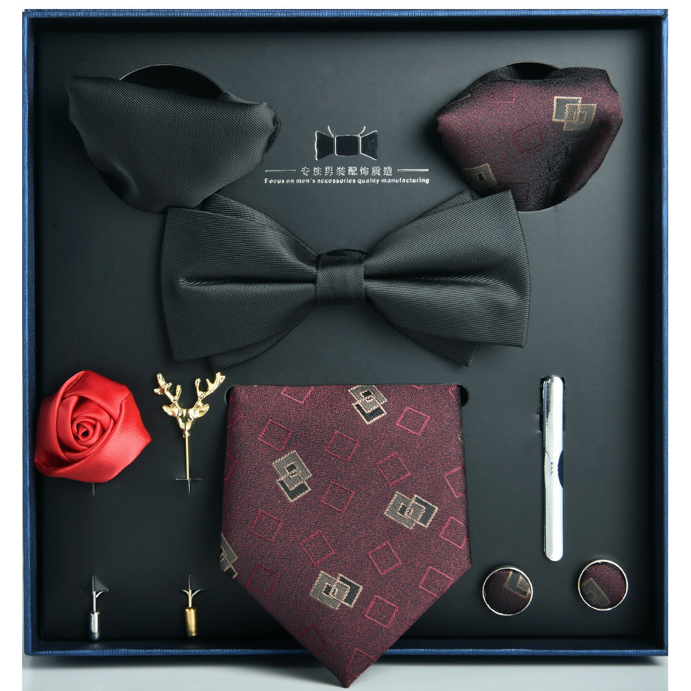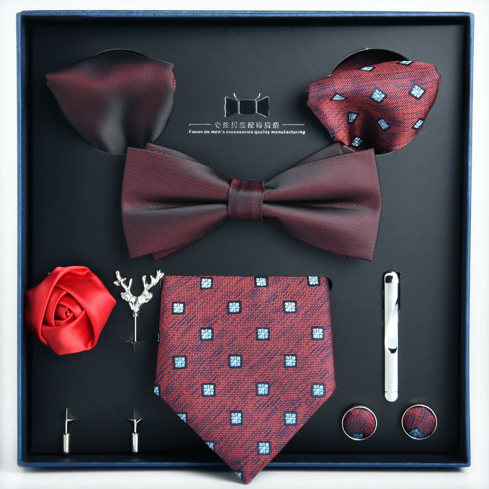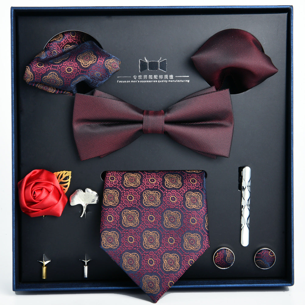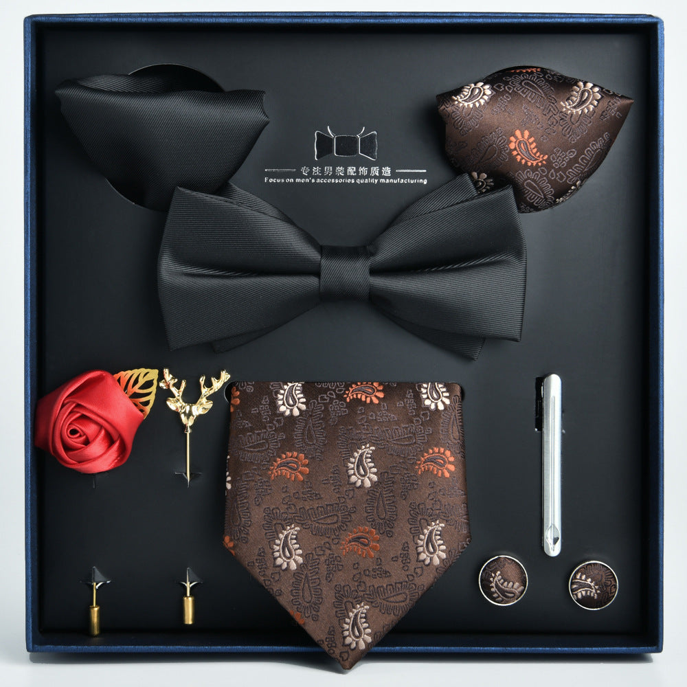 Business Stripe Polyester Men's Tie Gift Set - 8 Piece Collection for Weddings and Formal Occasions
