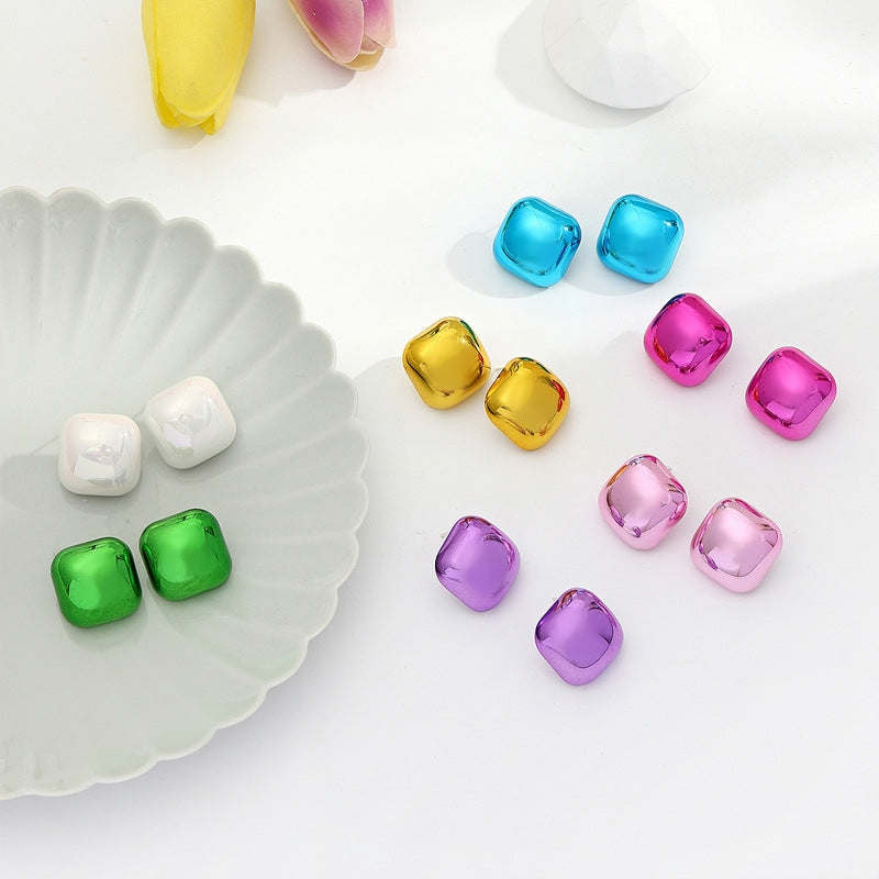 Candy Color Acrylic Round and Star Stud Earrings for Women