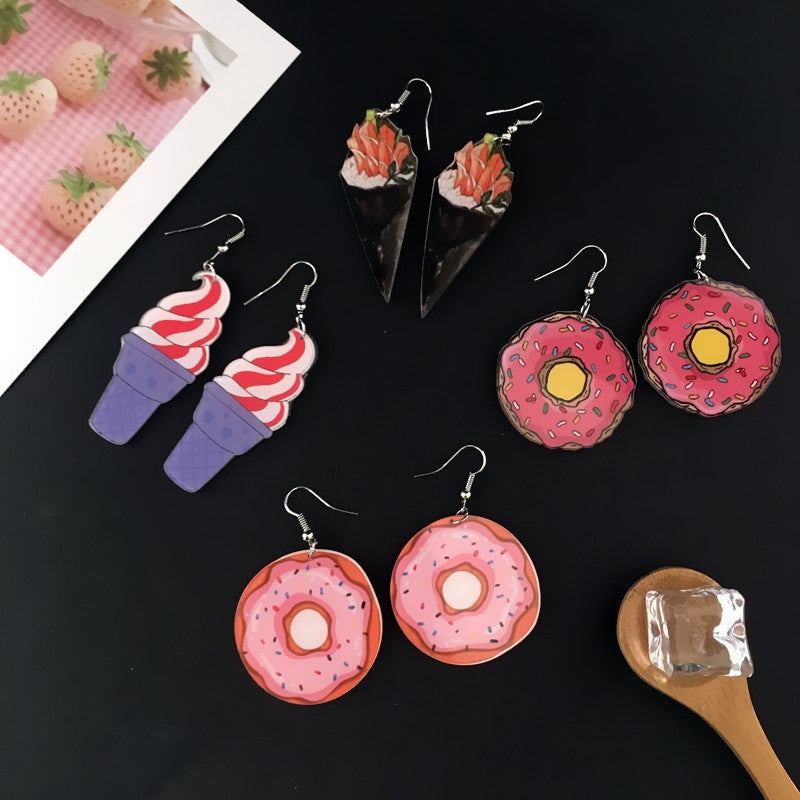 Cartoon Geometric Acrylic Sushi Donut Earrings