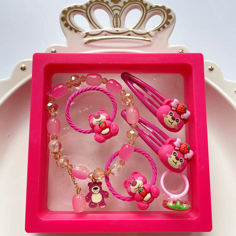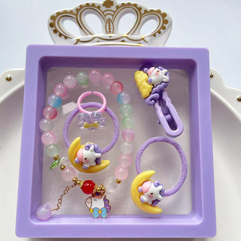 Cartoon Rabbit Unicorn Beaded Bracelet and Hair Accessory Set for Girls