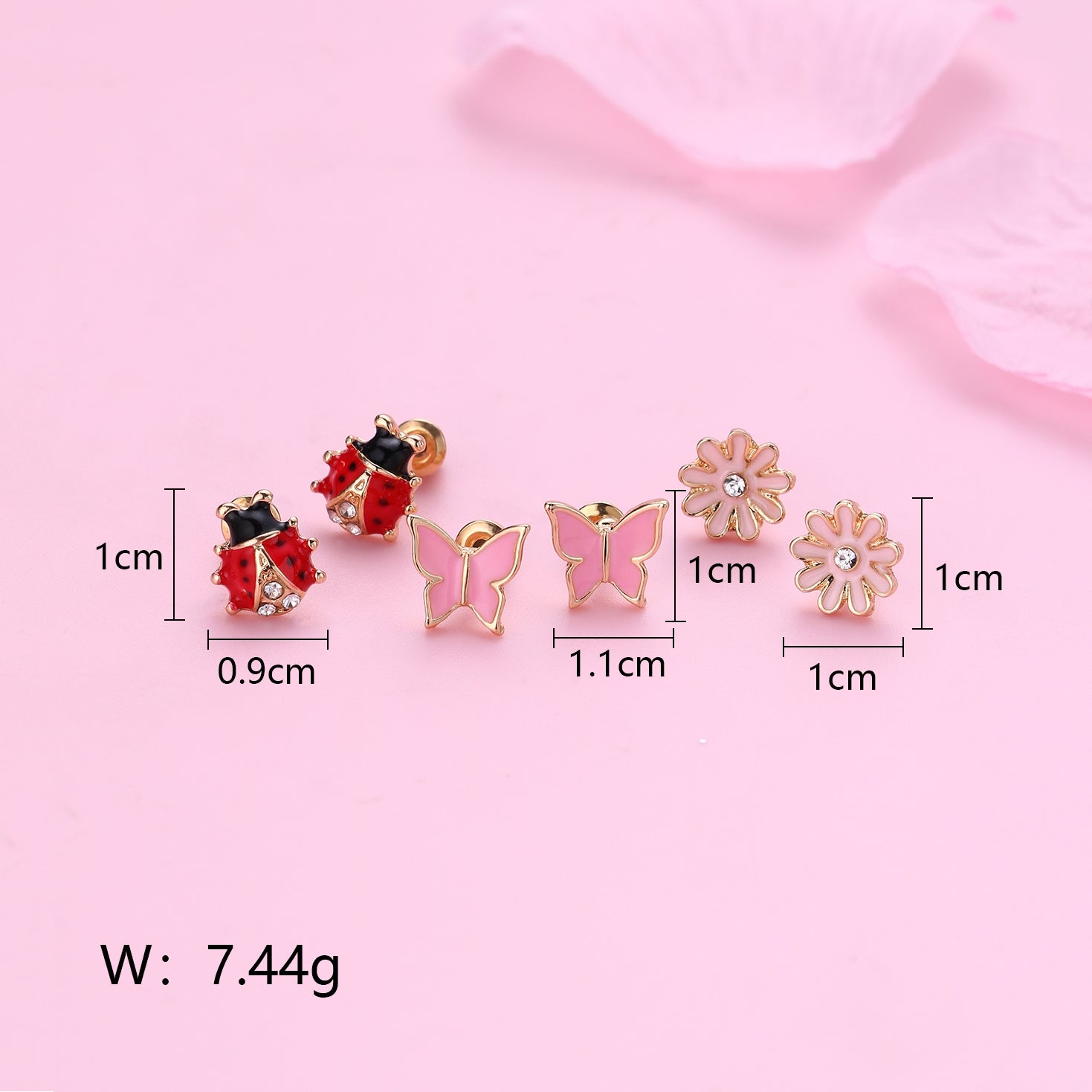 Cartoon Flower & Butterfly Alloy Stud Earrings for Kids and Women Gift