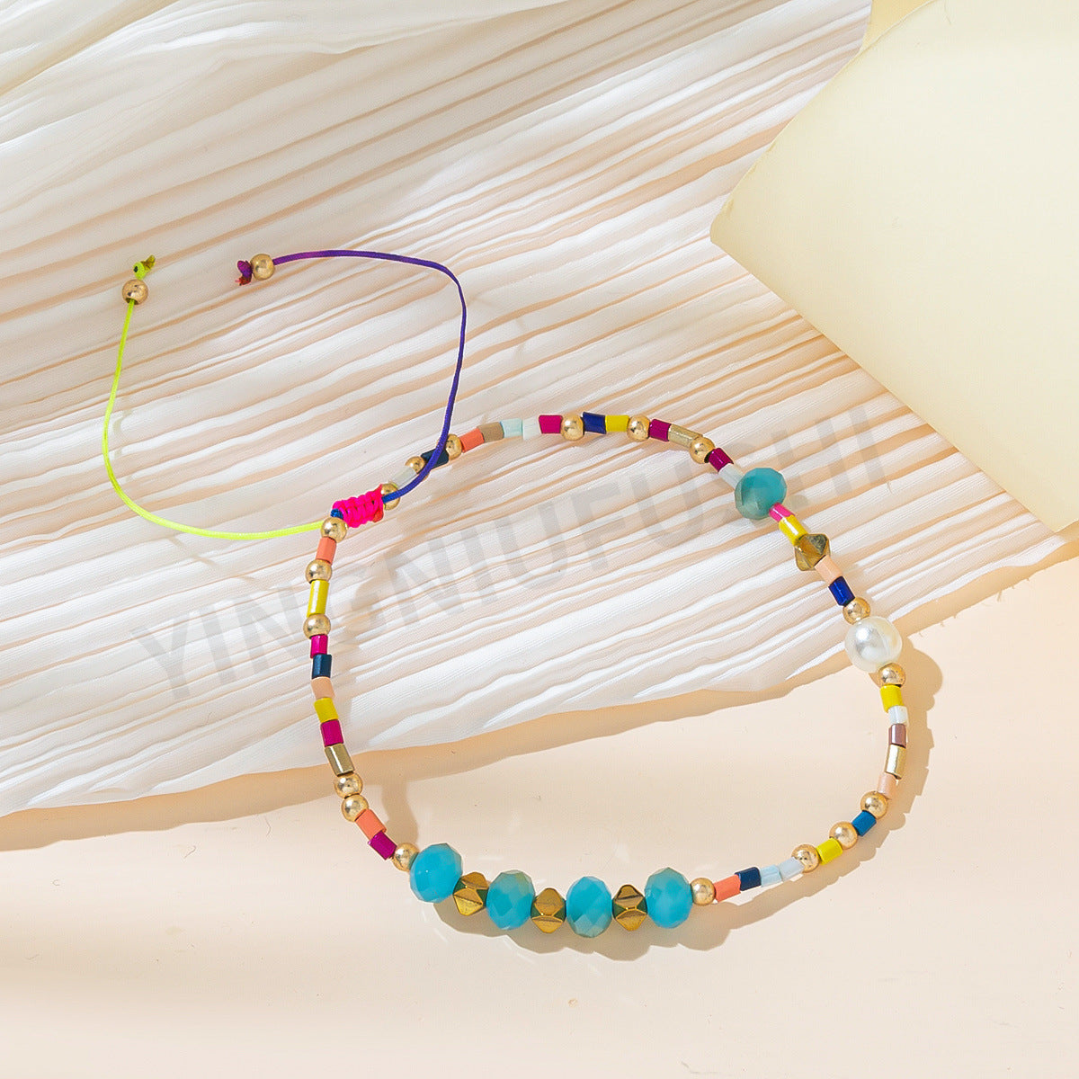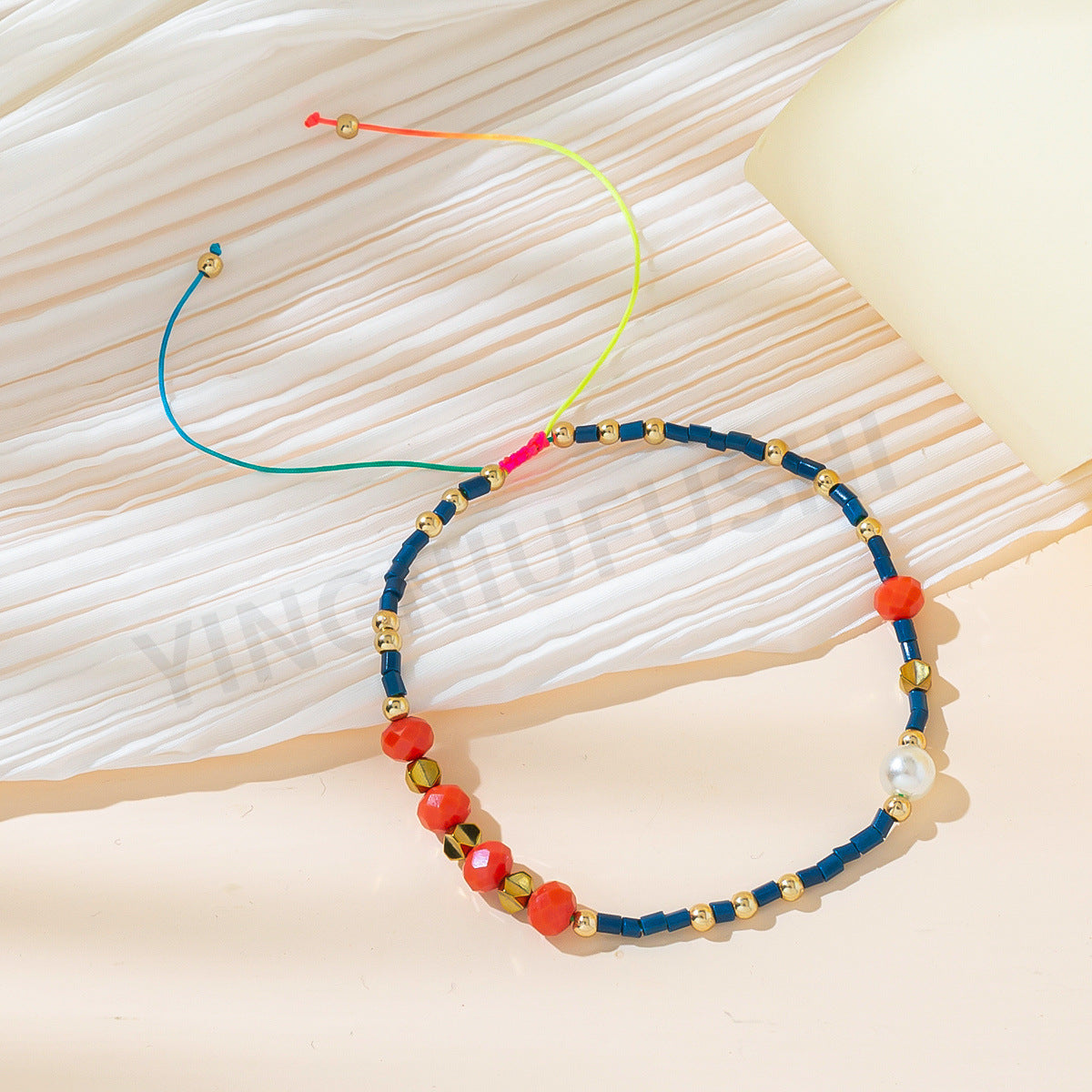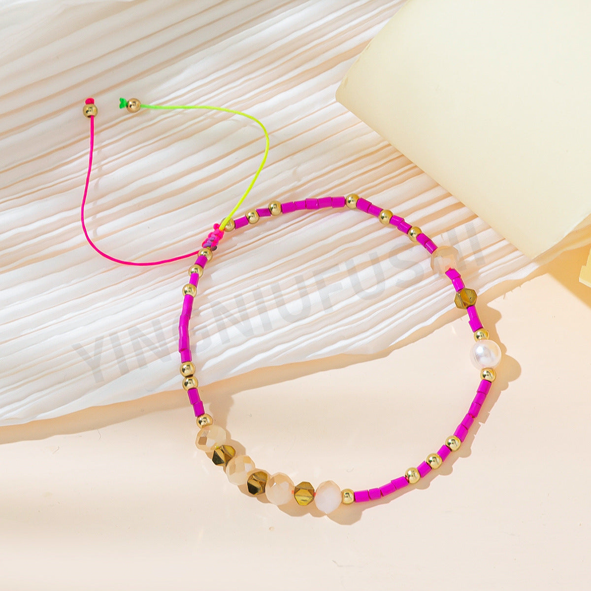 Casual Color Block Crystal Beaded Braided Women's Bracelet