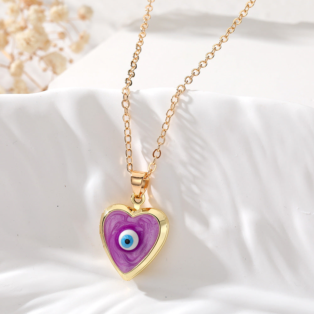Casual Heart Shape Alloy Copper Pendant Necklace with Evil Eye Photo Locket