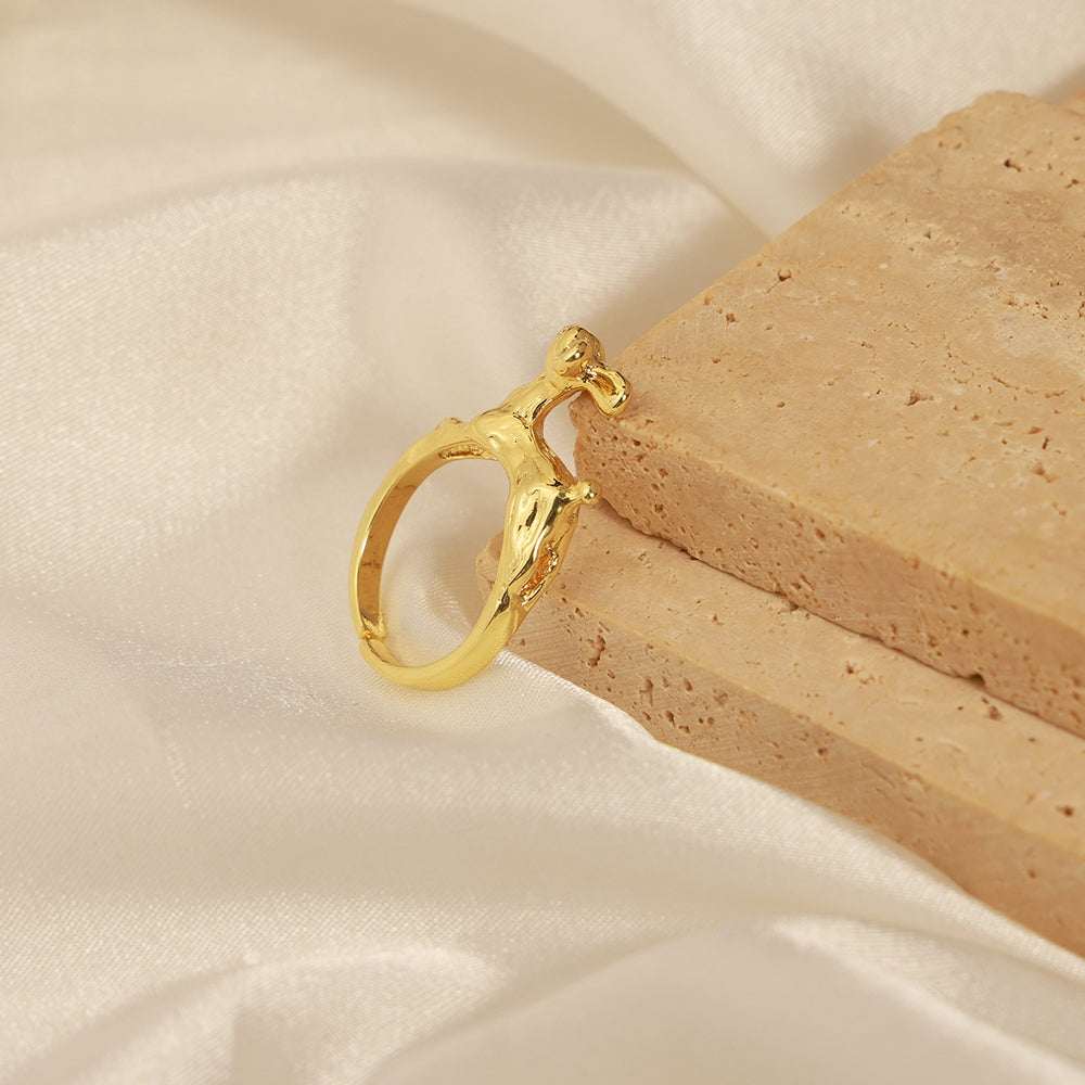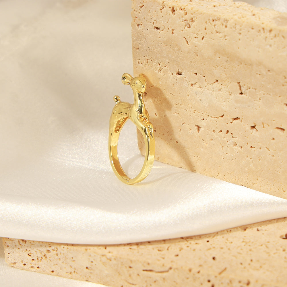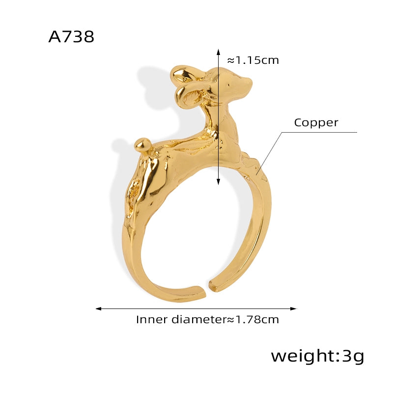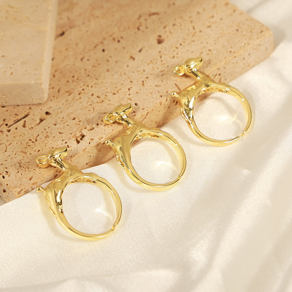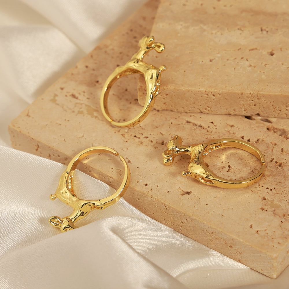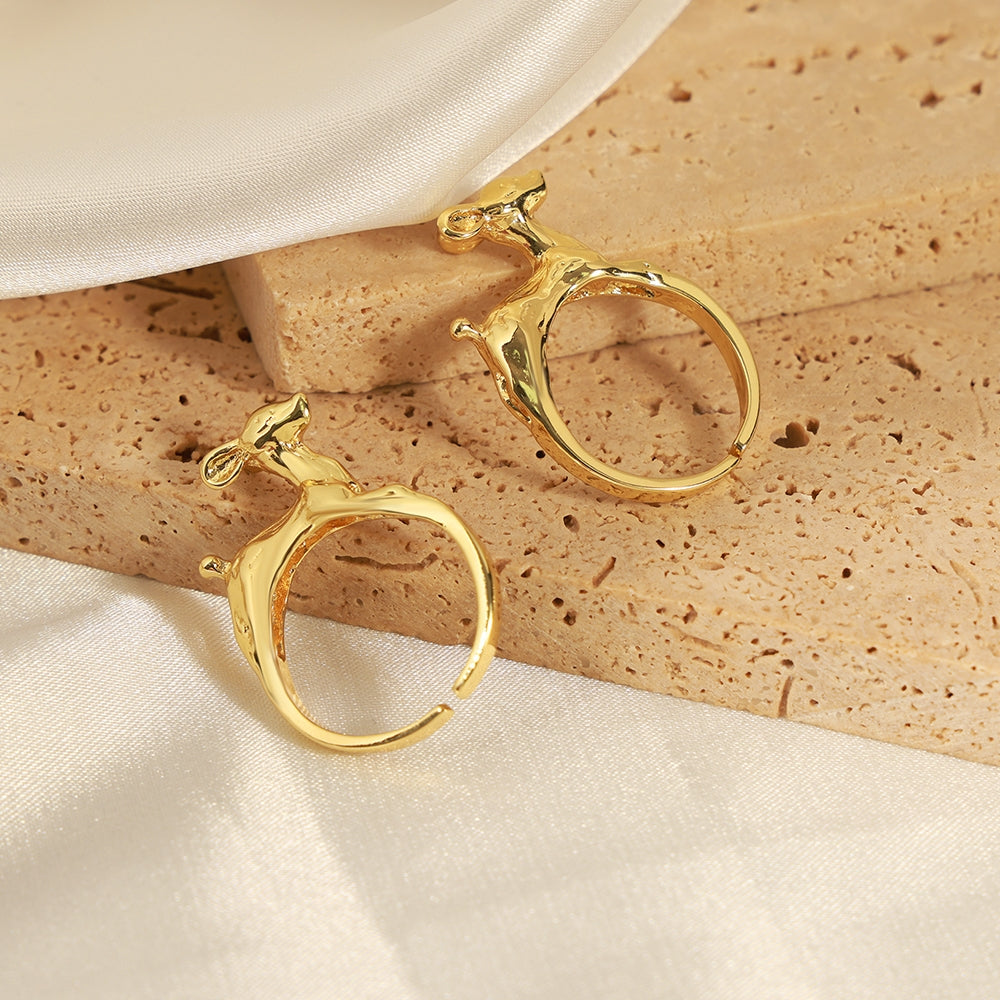 Elegant Geometric Deer Design 18K Gold Plated Copper Open Ring