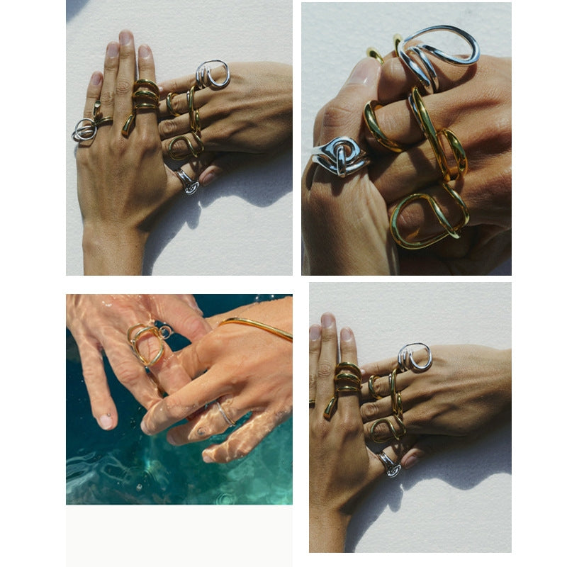 Minimalist Geometric 18k Gold Plated Titanium Steel Twist Rings