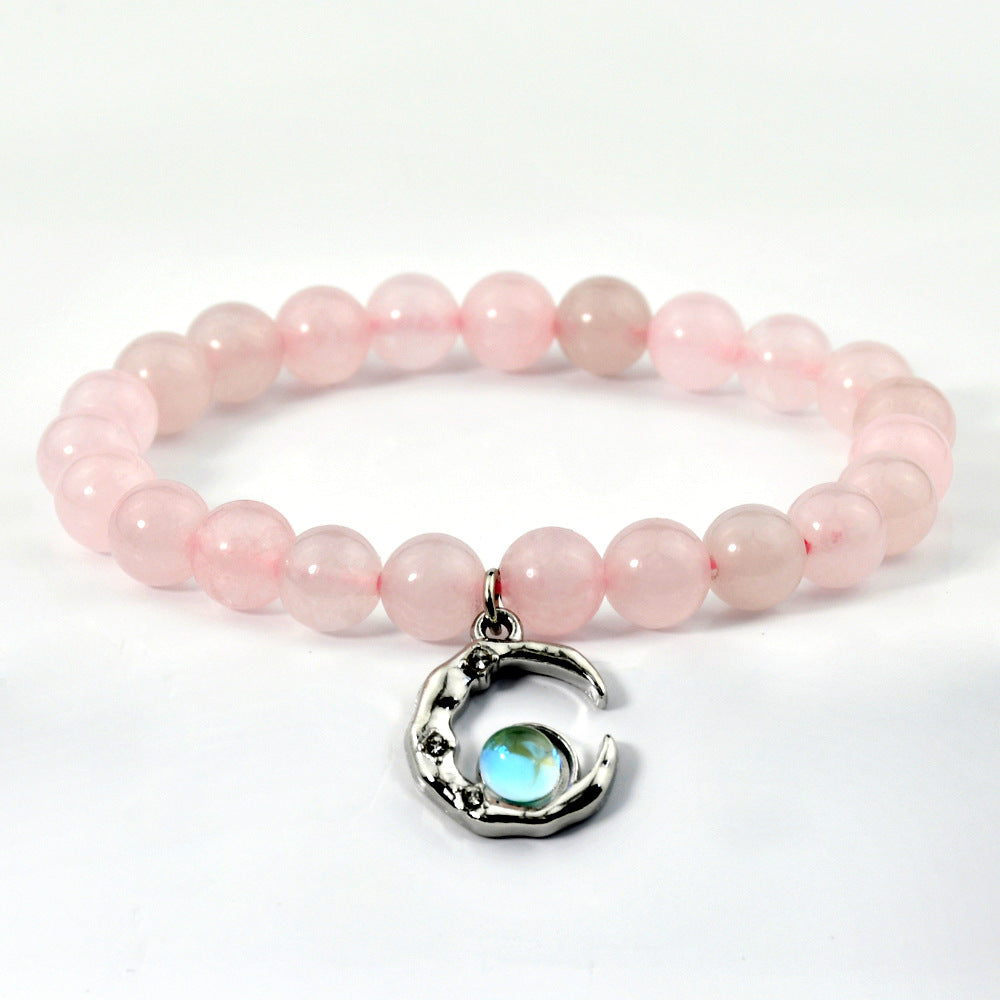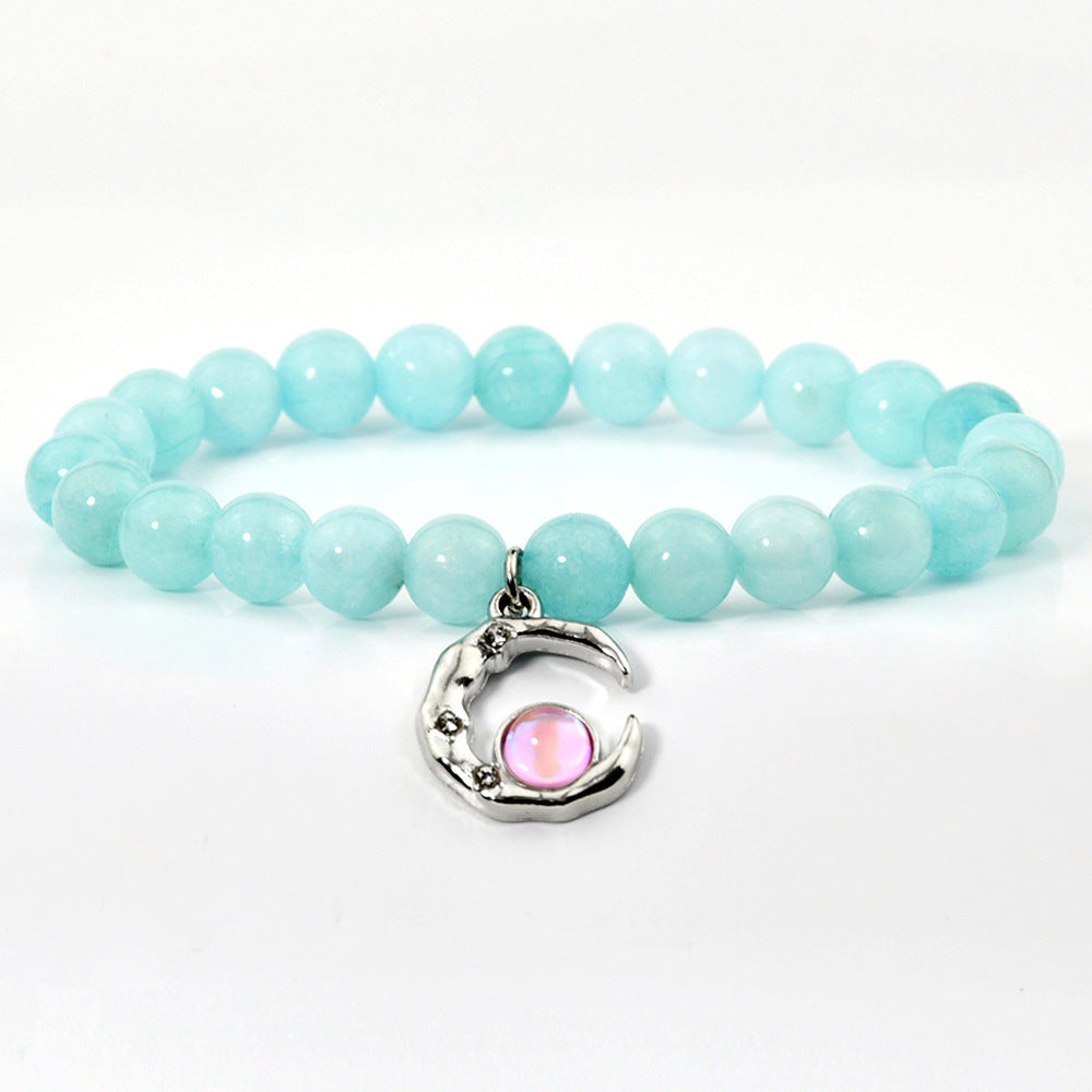 Casual Moon Crystal Beaded Women's Bracelet with Gemstone and Rhinestone Charms