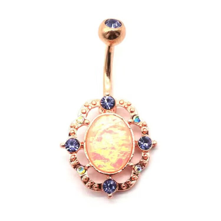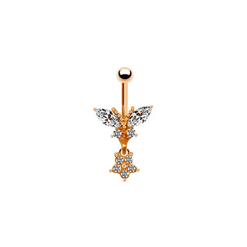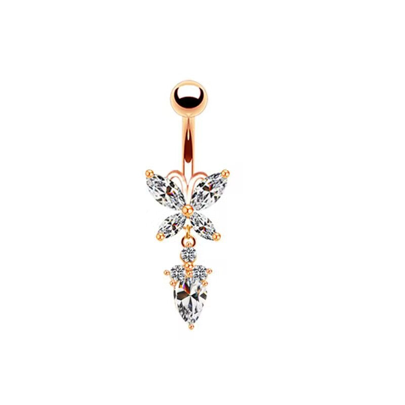 Rose Gold Plated Zircon Butterfly & Snowflake Belly Ring with Rhinestones