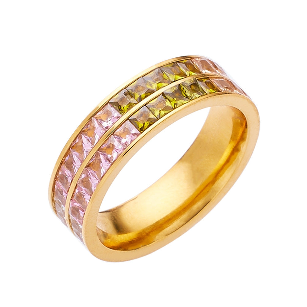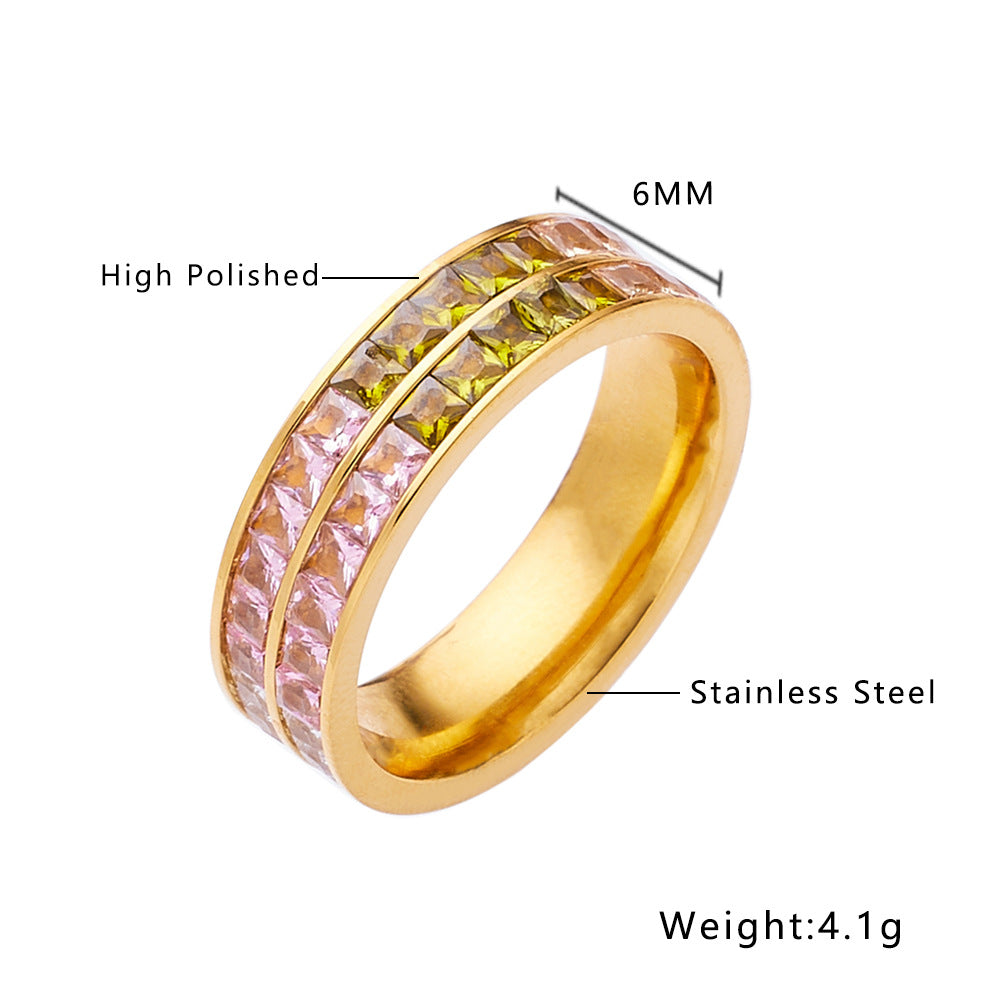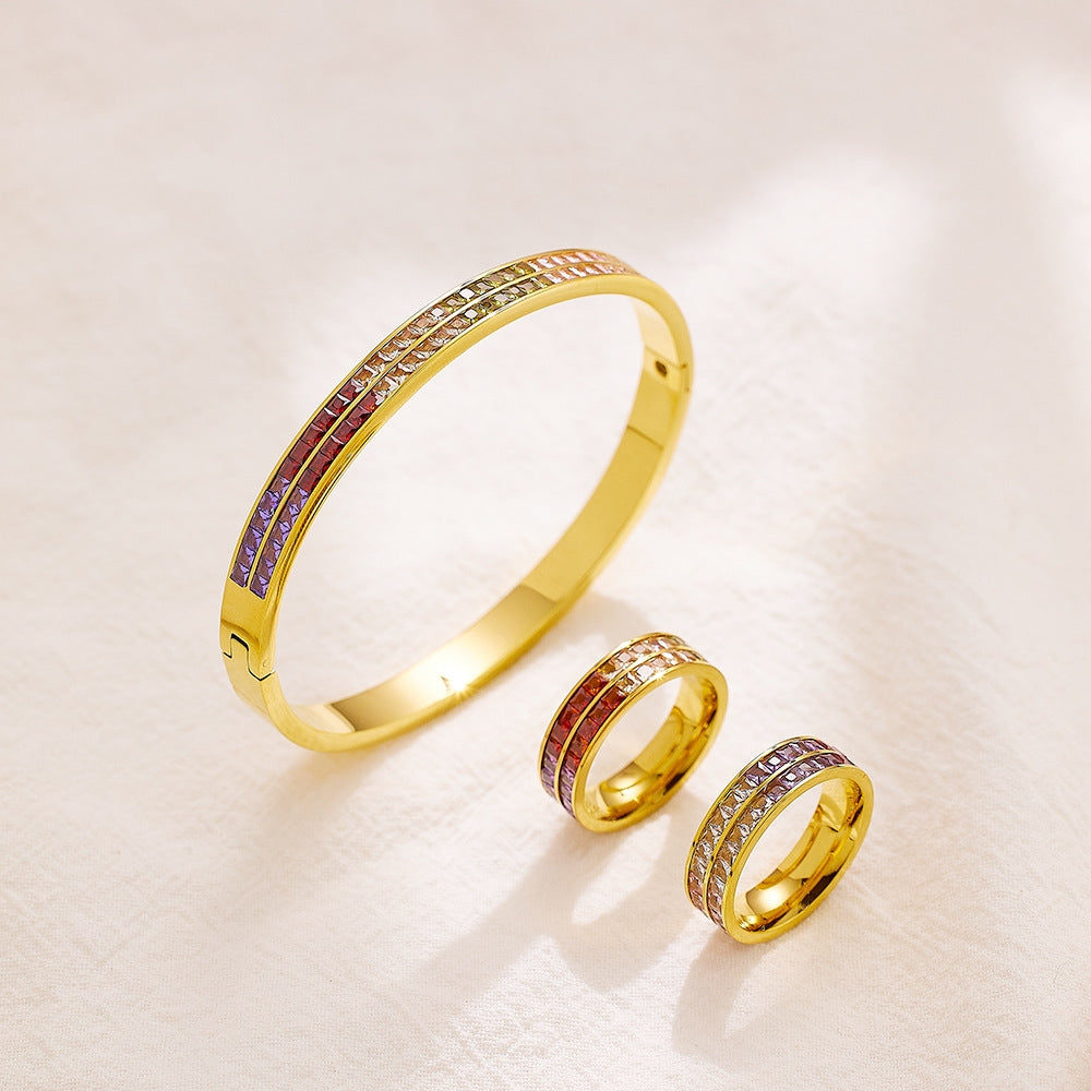 Casual Titanium Steel Zircon Inlay 18k Gold Plated Ring and Bracelet Set