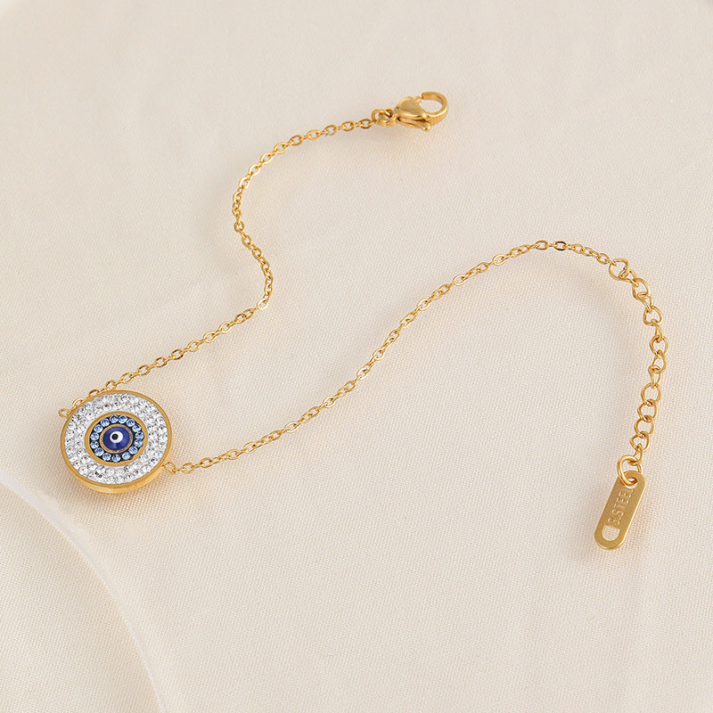 Casual Shiny Evil Eye Zircon Stainless Steel Chain Bracelet