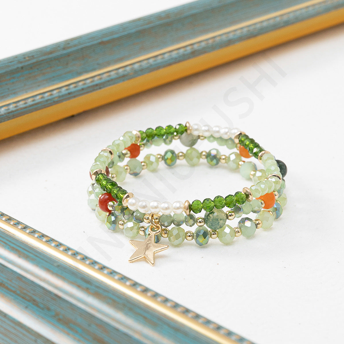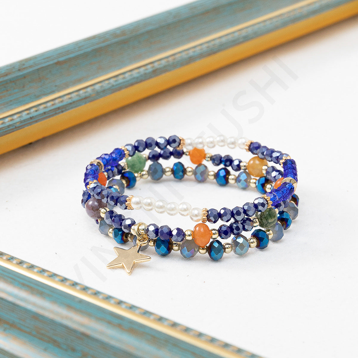 Casual Beach Style Crystal Beaded Layered Bracelet Set