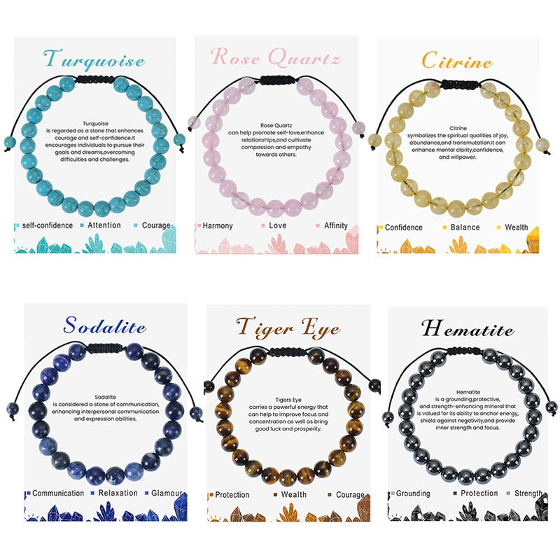 Casual Geometric Natural Stone Handmade Rope Bracelets with Card Elements