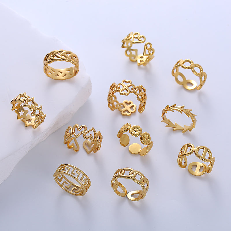 Casual Star Heart Celtic Knot Stainless Steel 18K Gold Plated Open Ring
