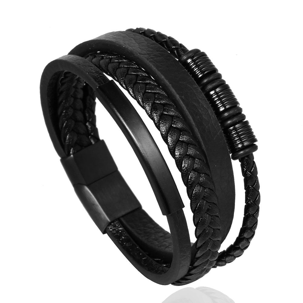 Casual Multi-Layer Braided PU Leather Stainless Steel Men's Bracelet