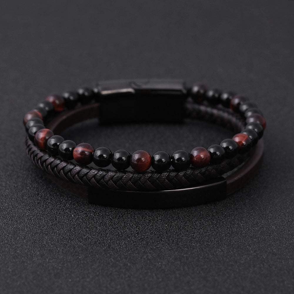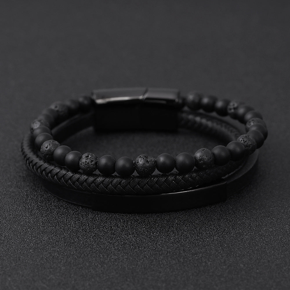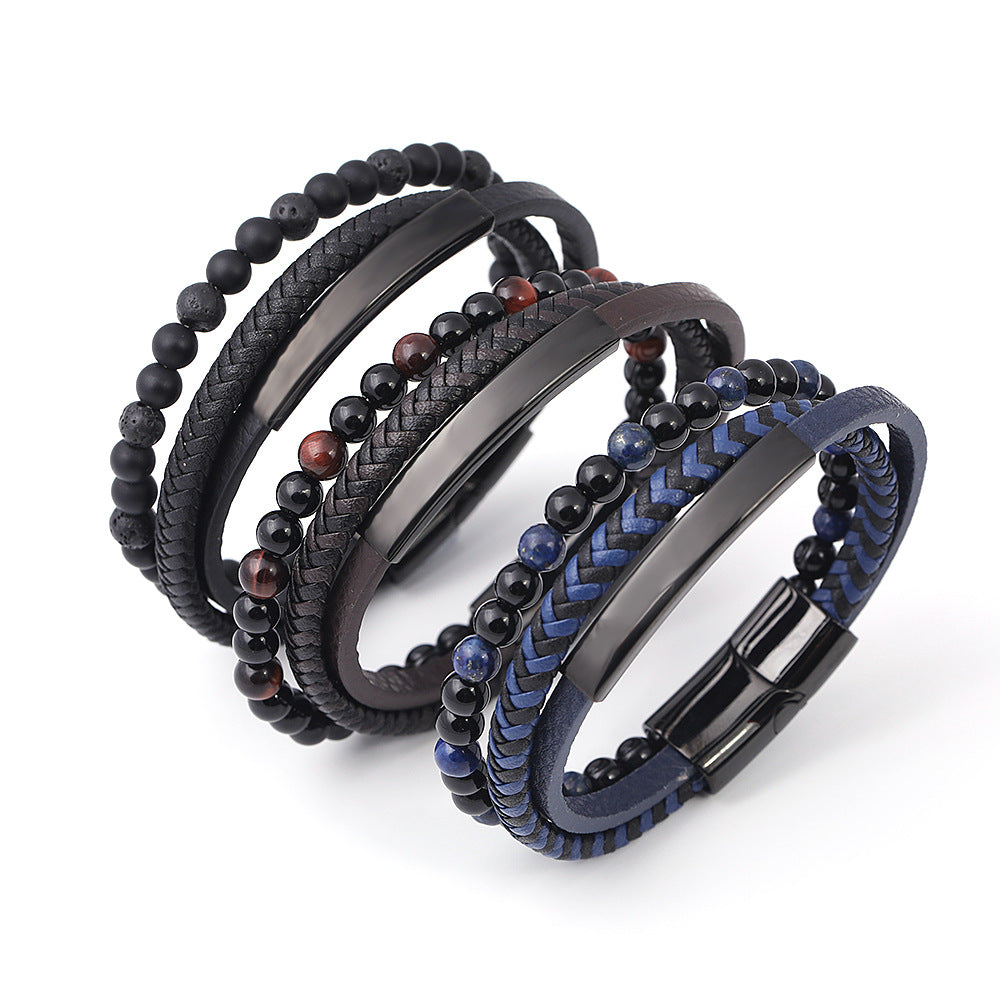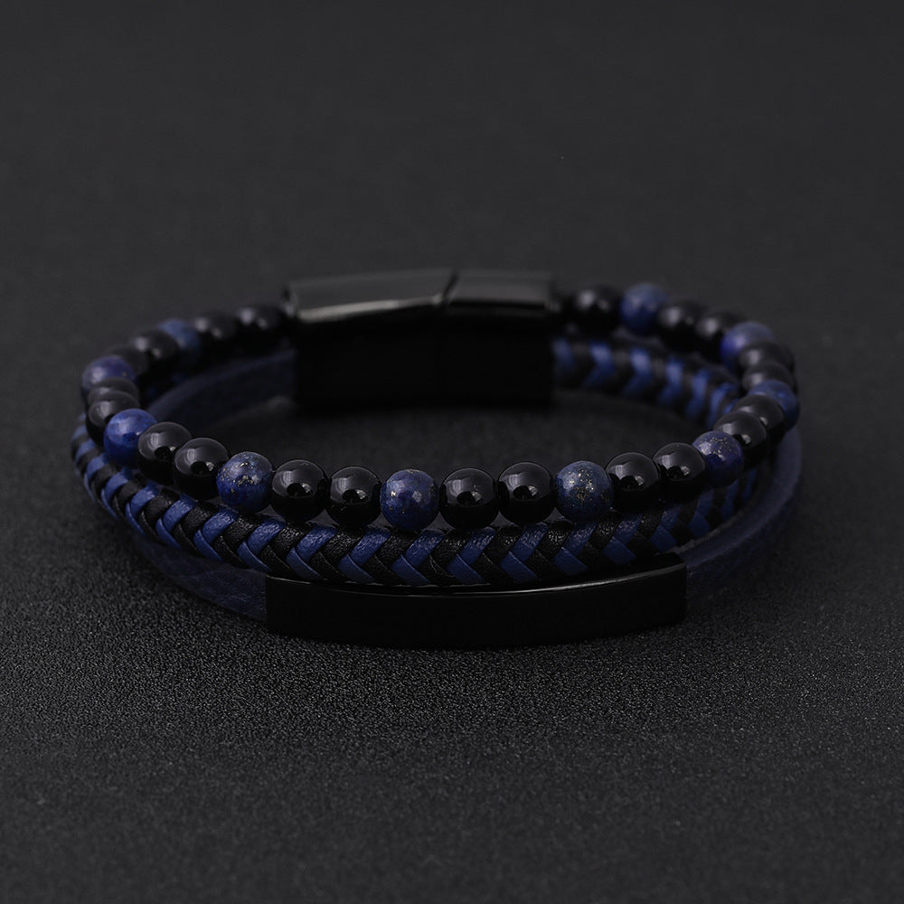 Geometric Titanium Steel Lapis Lazuli and Lava Stone Men's Bracelet