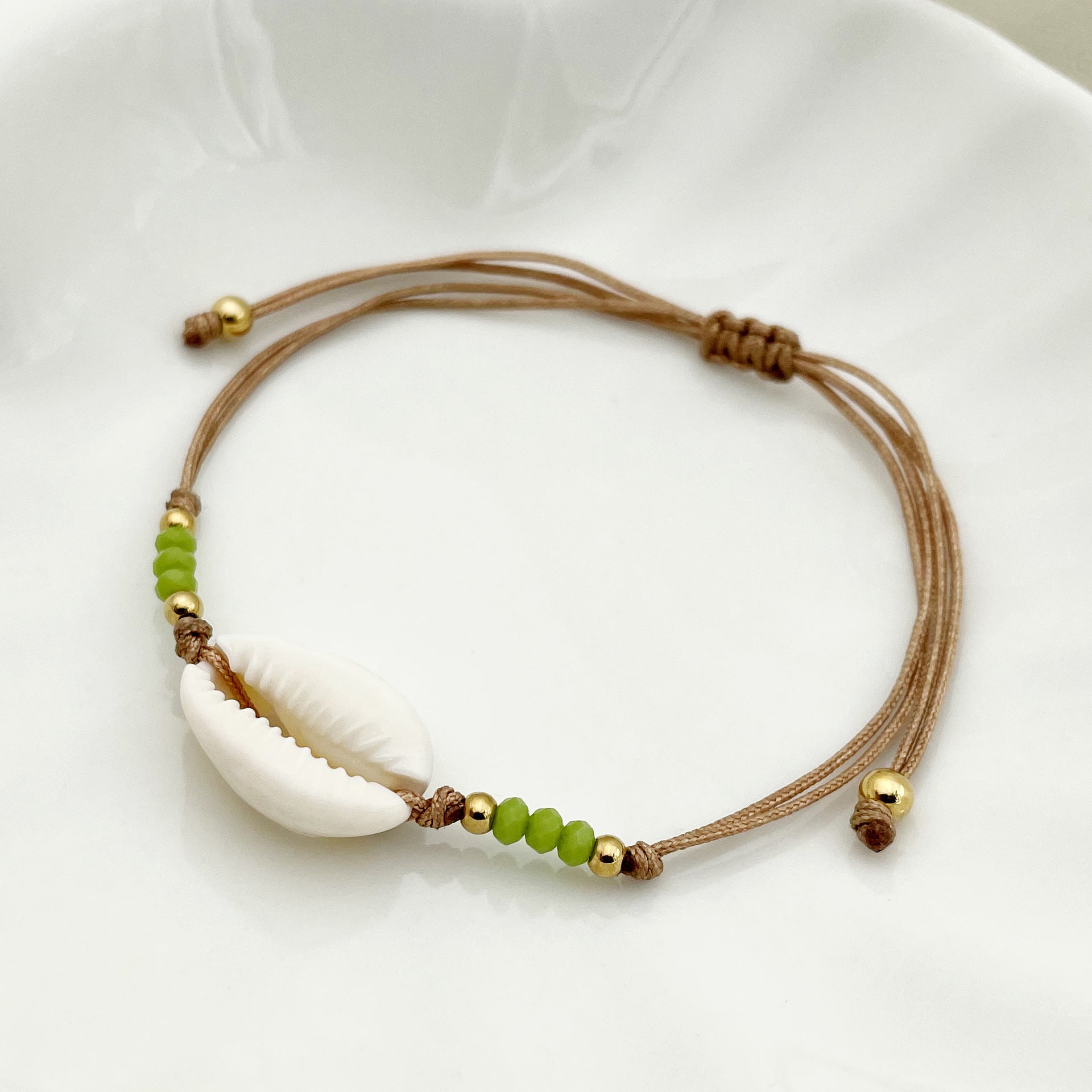 Casual Marine Style Adjustable Shell Bracelet with Green Crystal Beads and 14K Gold Plated Accents