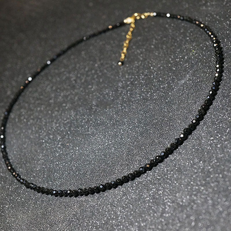 Commute Geometric Black Spinel Crystal Beaded Women's Choker Necklace