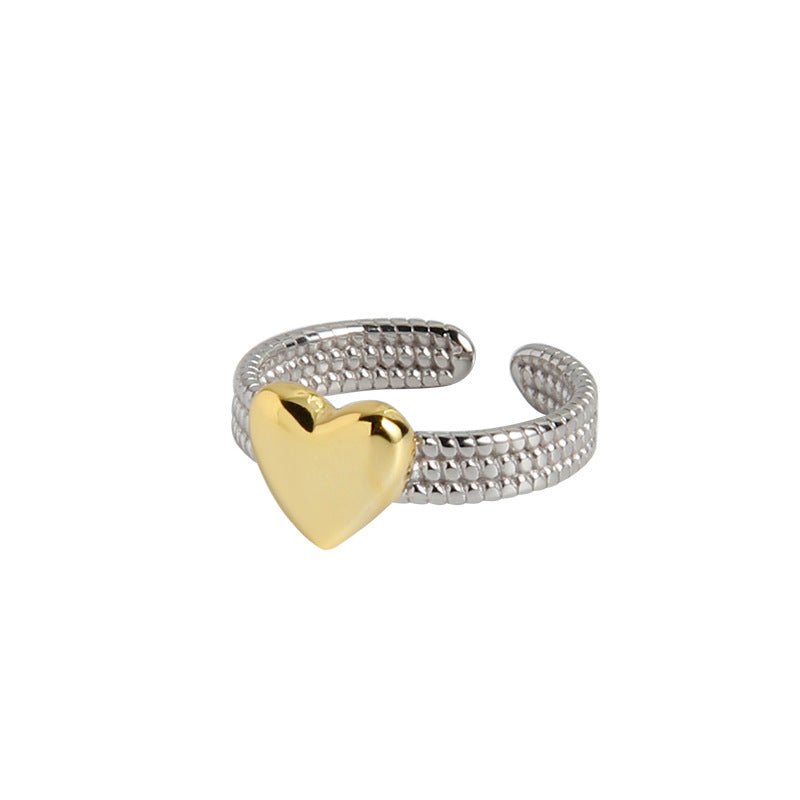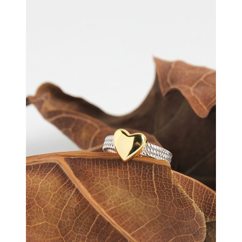 Dual Tone Heart Chain Adjustable Ring in Sterling Silver and Gold Plating