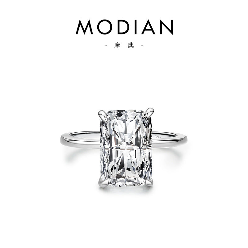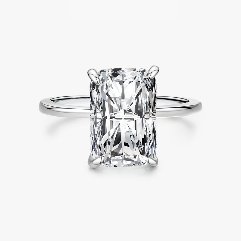 Commute Rectangle Sterling Silver Inlay Zircon Rhodium Plated Statement Ring