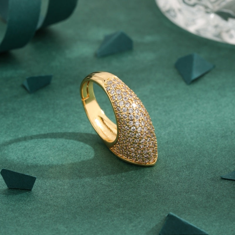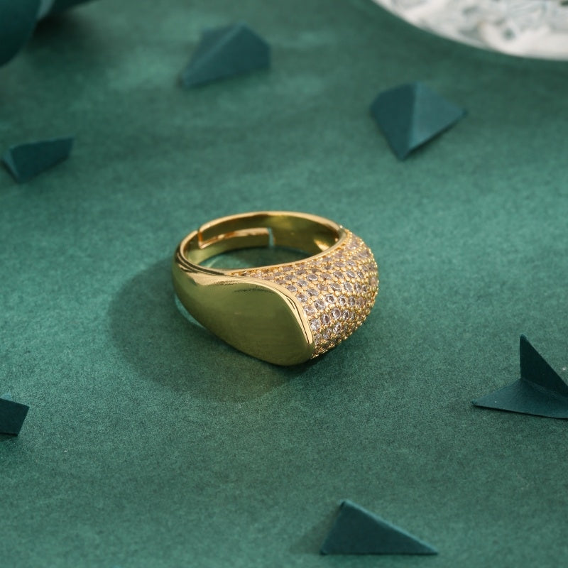 18K Gold Plated Geometric Zircon Ring for Women - Vintage Style