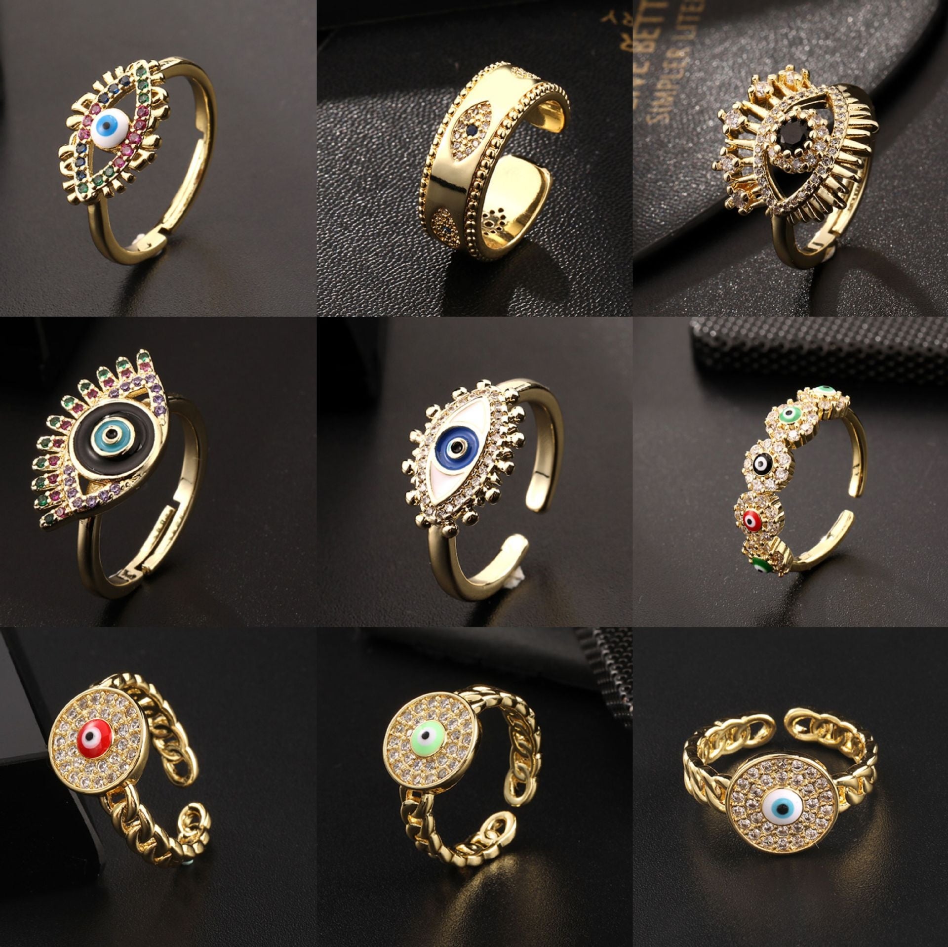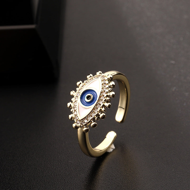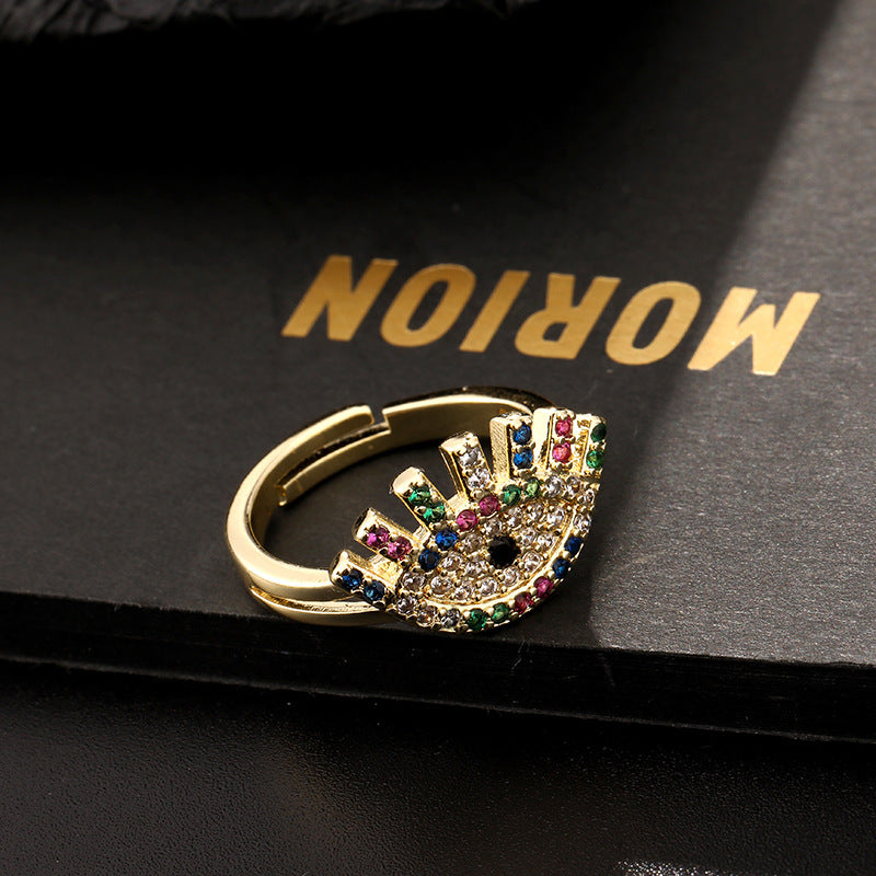 18K Gold Plated Colorful Zircon Eye Open Ring